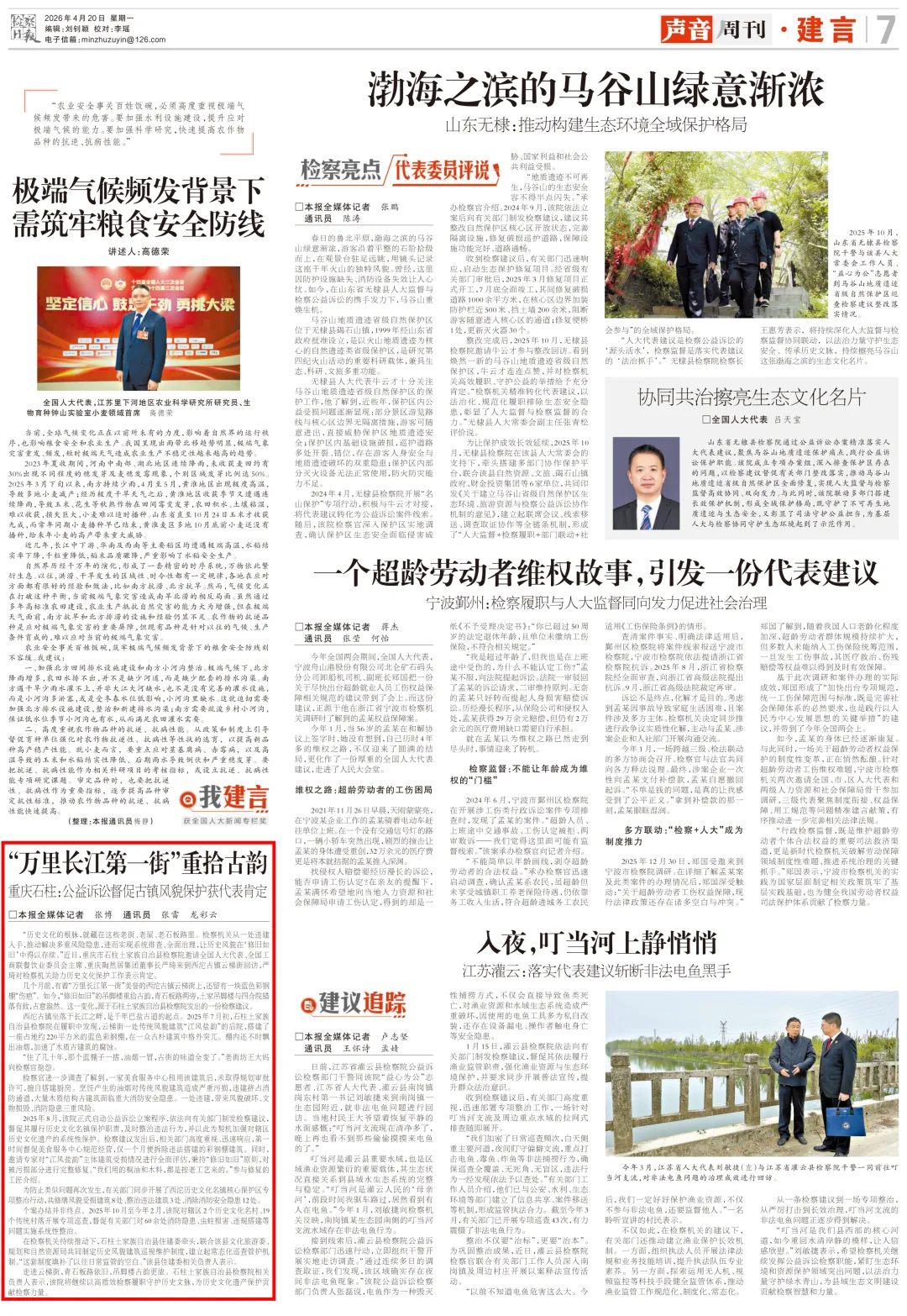 “历史文化的根脉,就藏在这些老街、老屋、老石板路里。检察机关从一处违建入手,推动解决多重风险隐患,进而实现系统排查、全面治理,让历史风貌在‘修旧如旧’中得以存续。”近日,重庆市石柱土家族自治县检察院邀请全国人大代表、全国工商联餐饮业委员会主席、重庆陶然居集团董事长严琦来到西沱古镇云梯街回访,严琦对检察机关助力历史文化保护工作表示肯定。