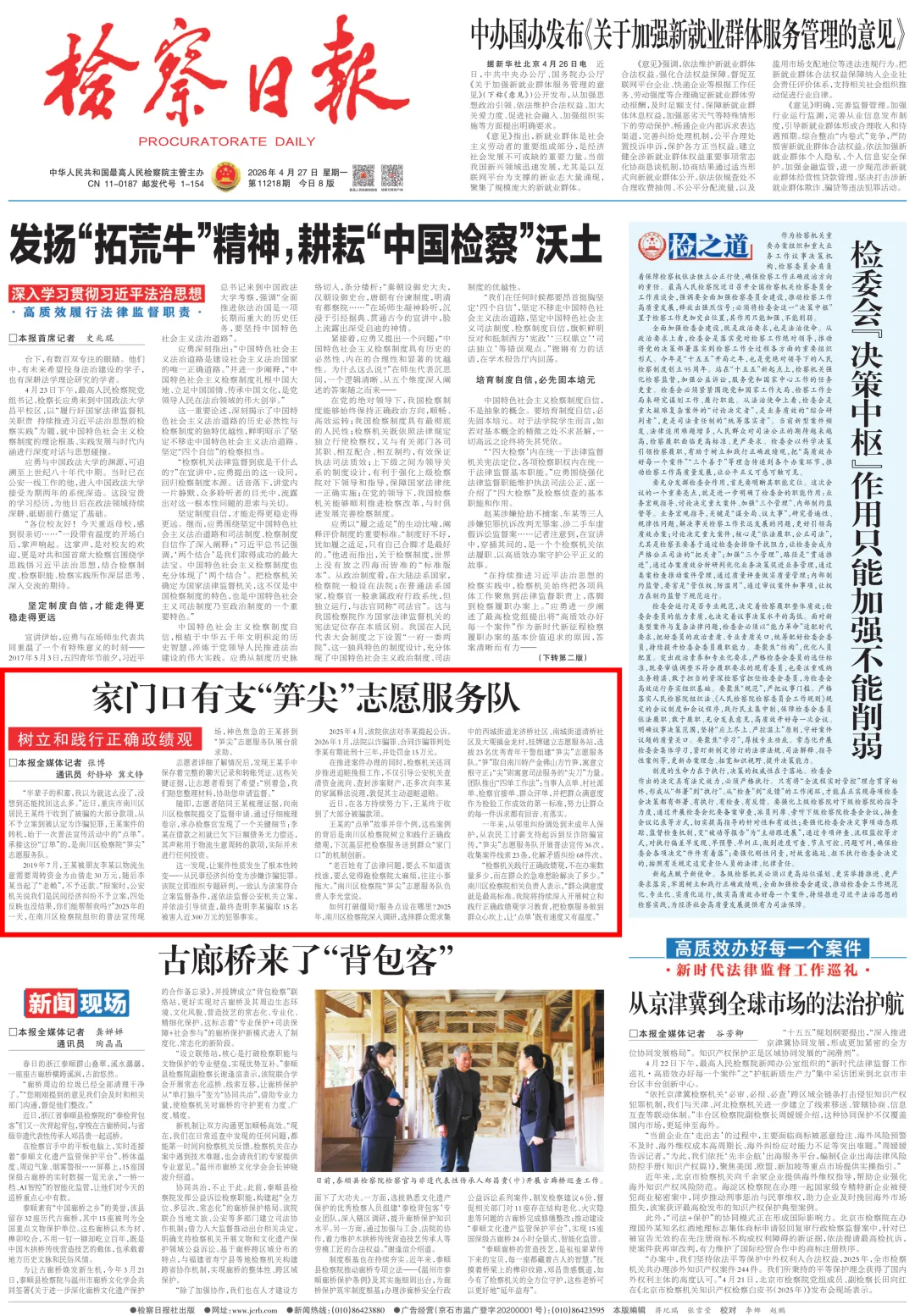 如何打破僵局?服务点设在哪里?2025年,南川区检察院深入调研,选择群众需求集中的西城街道龙济桥社区、南城街道清桥社区及大观镇金龙村,挂牌建立志愿服务站,选拔23名优秀青年干警组建“笋尖”志愿服务队。“笋”取自南川特产金佛山方竹笋,寓意立根守正;“尖”则寓意司法服务的“尖刀”力量。团队推出“四单工作法”:当事人点单、村社派单、检察官接单、群众评单,并把群众满意度作为检验工作成效的第一标准,努力让群众的每一件诉求都有回音、有落实。