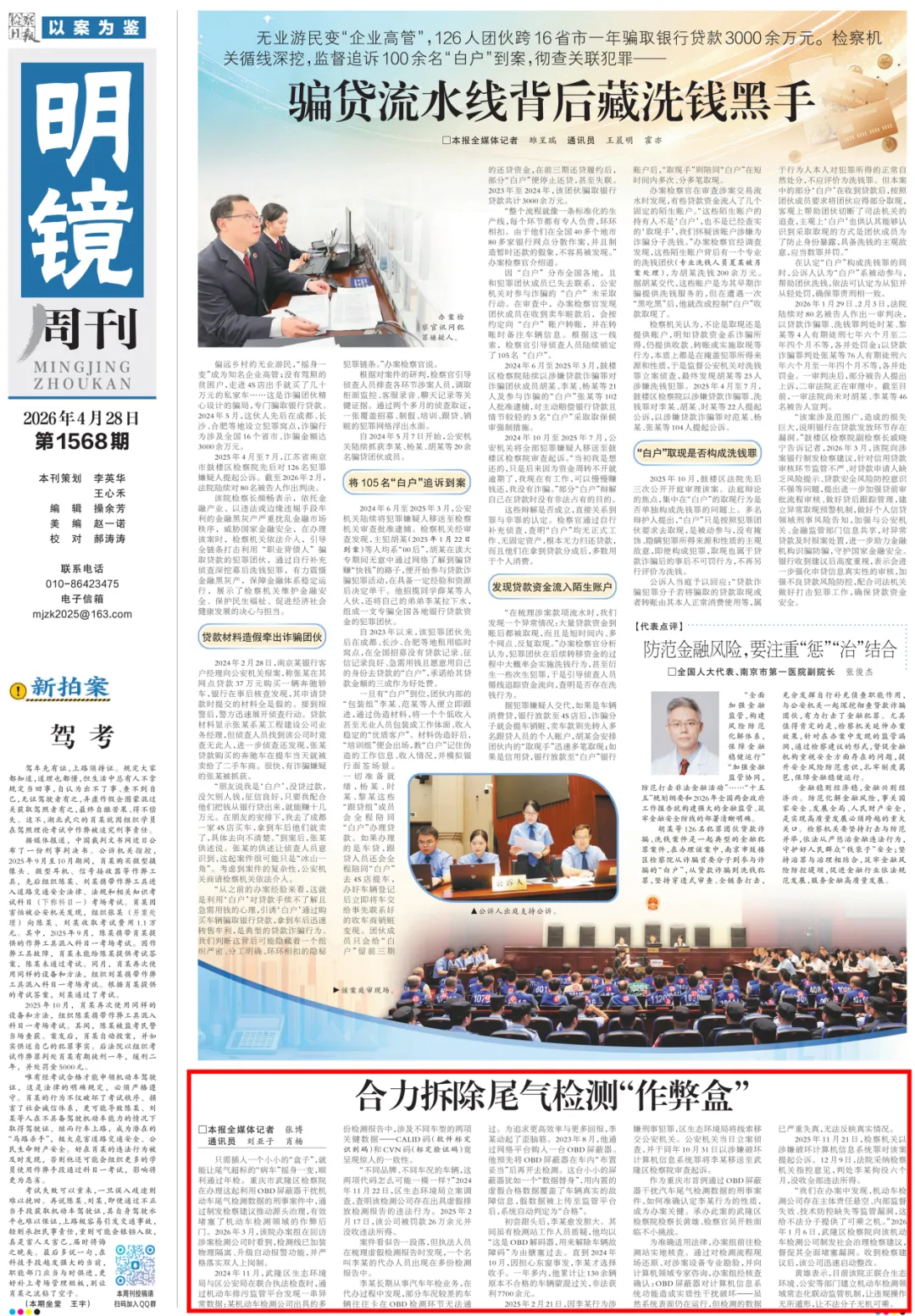 2026年4月28日,《检察日报》第5版“明镜周刊”刊登《合力拆除尾气检测“作弊盒”》一文,内容如下: