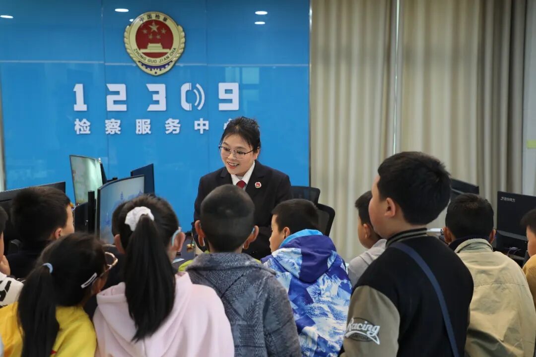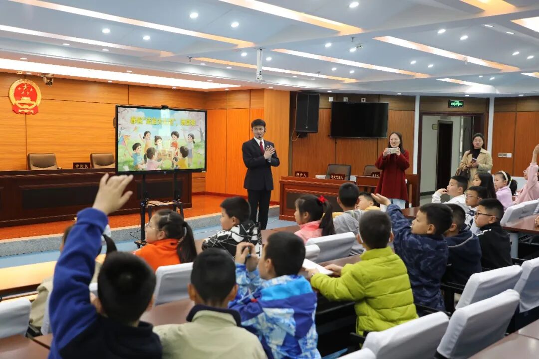 在检察官助理王海洋带领下,孩子们参观了办案区、法治教育展厅、警示教育案例室、模拟法庭等场所。生动的案例讲解、趣味互动体验、紧张的知识问答,让枯燥的法律知识变得鲜活易懂。孩子们近距离感受法律威严,系统学习了《未成年人保护法》《预防未成年人犯罪法》等内容,在沉浸式体验中筑牢法治意识。