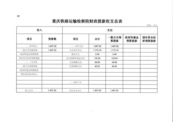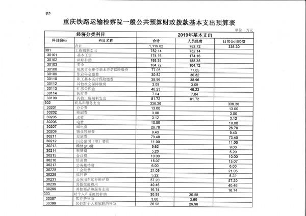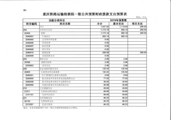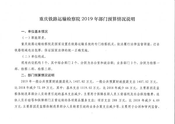 重庆铁路运输检察院2019年部门预算情况说明