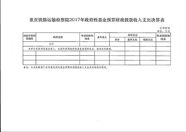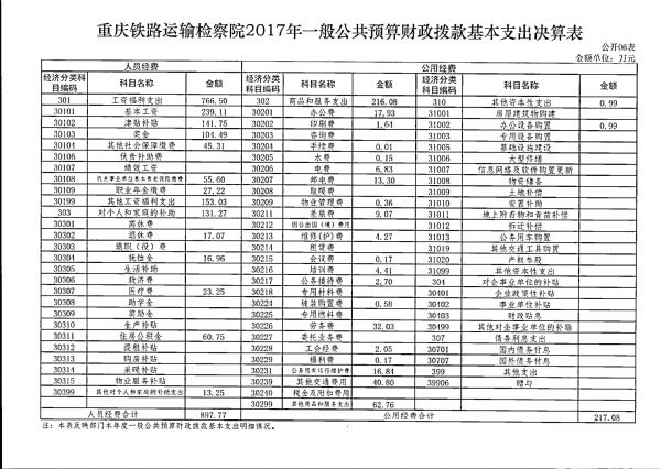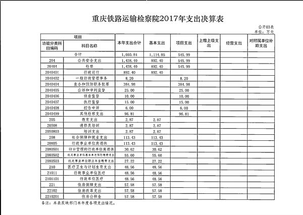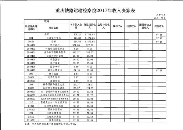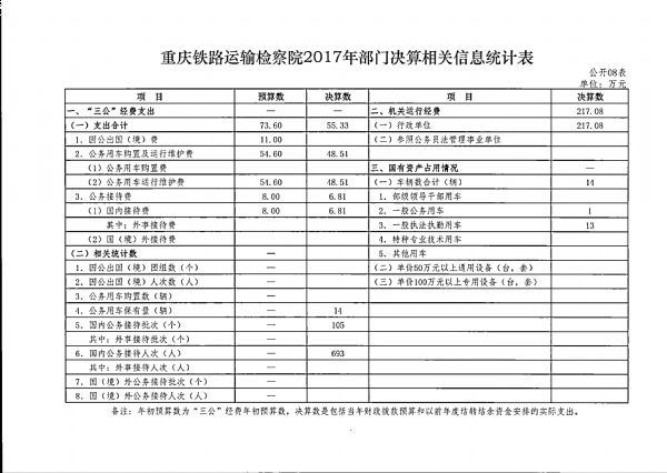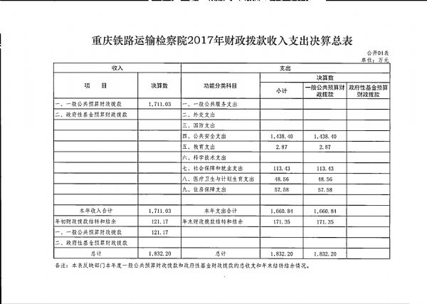 重庆铁路运输检察院2017年部门决算