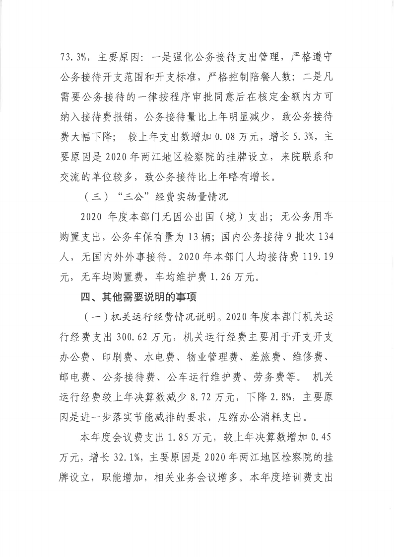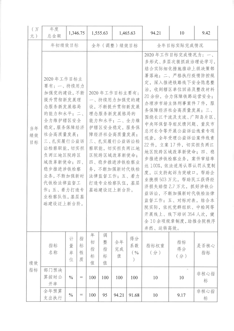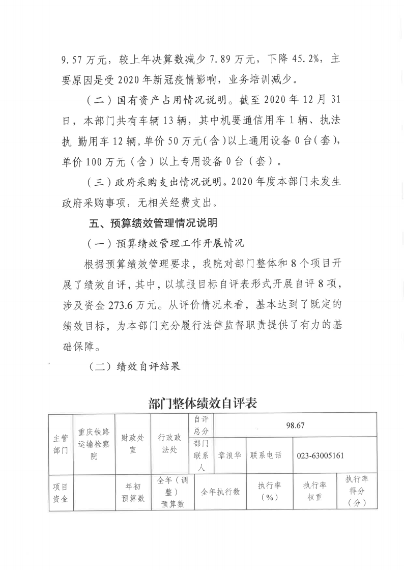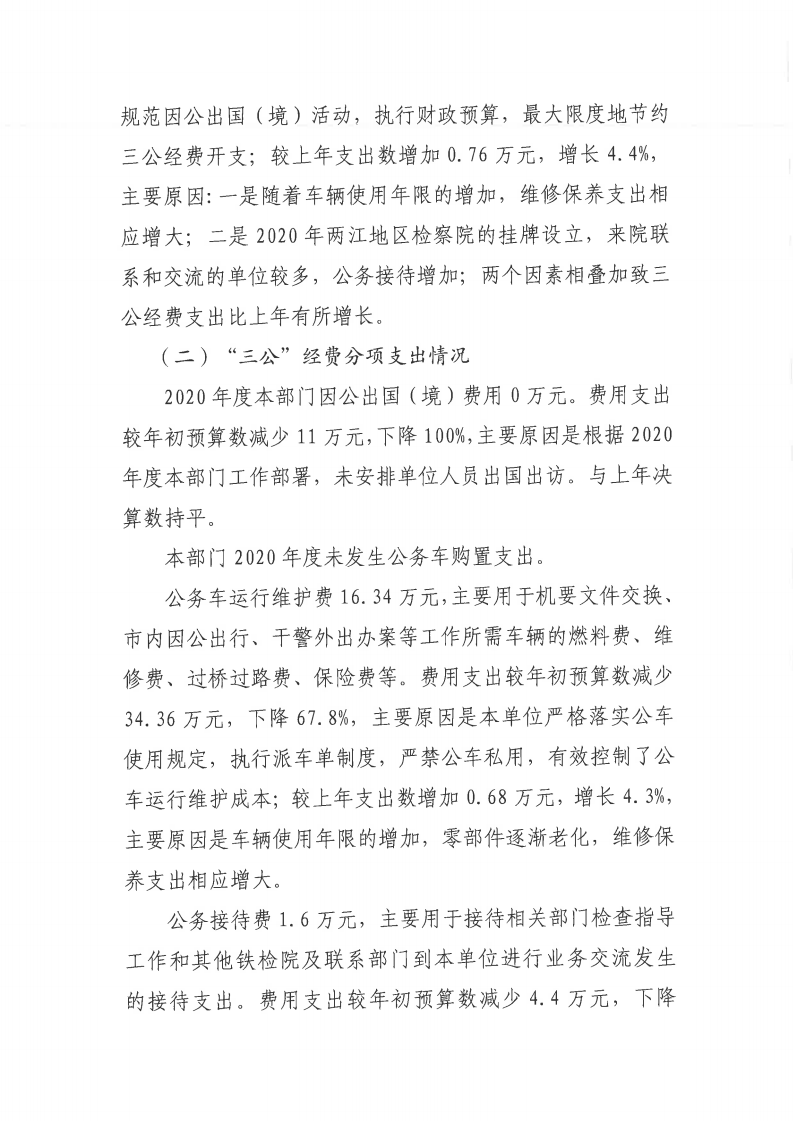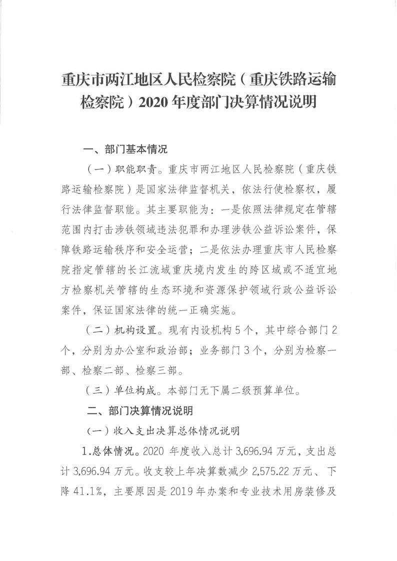 重庆市两江地区人民检察院(重庆铁路运输检察院)2020年度部门决算