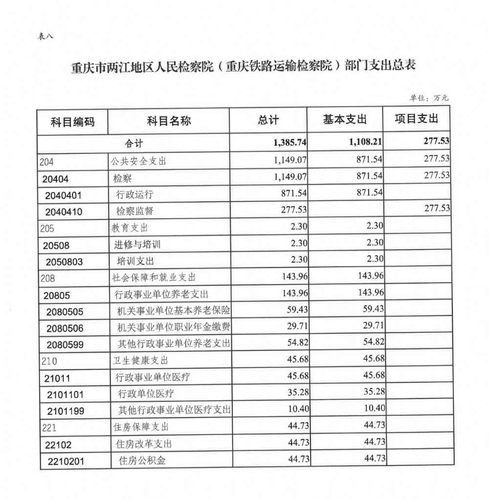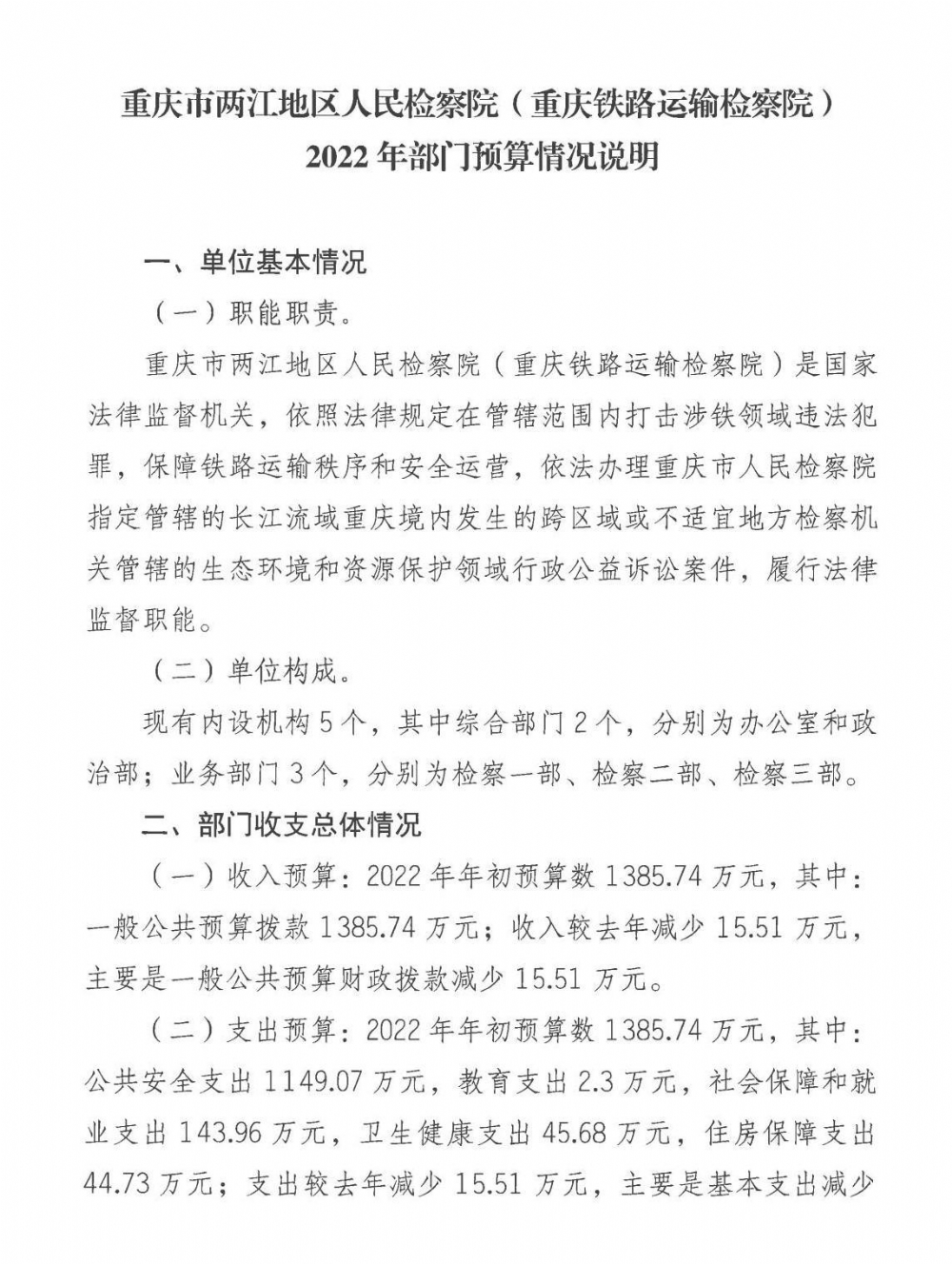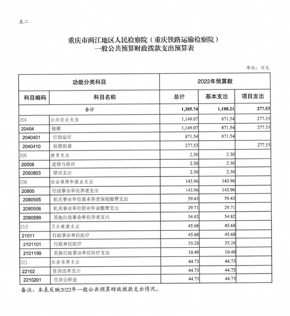 重庆市两江地区人民检察院(重庆铁路运输检察院)2022年部门预算