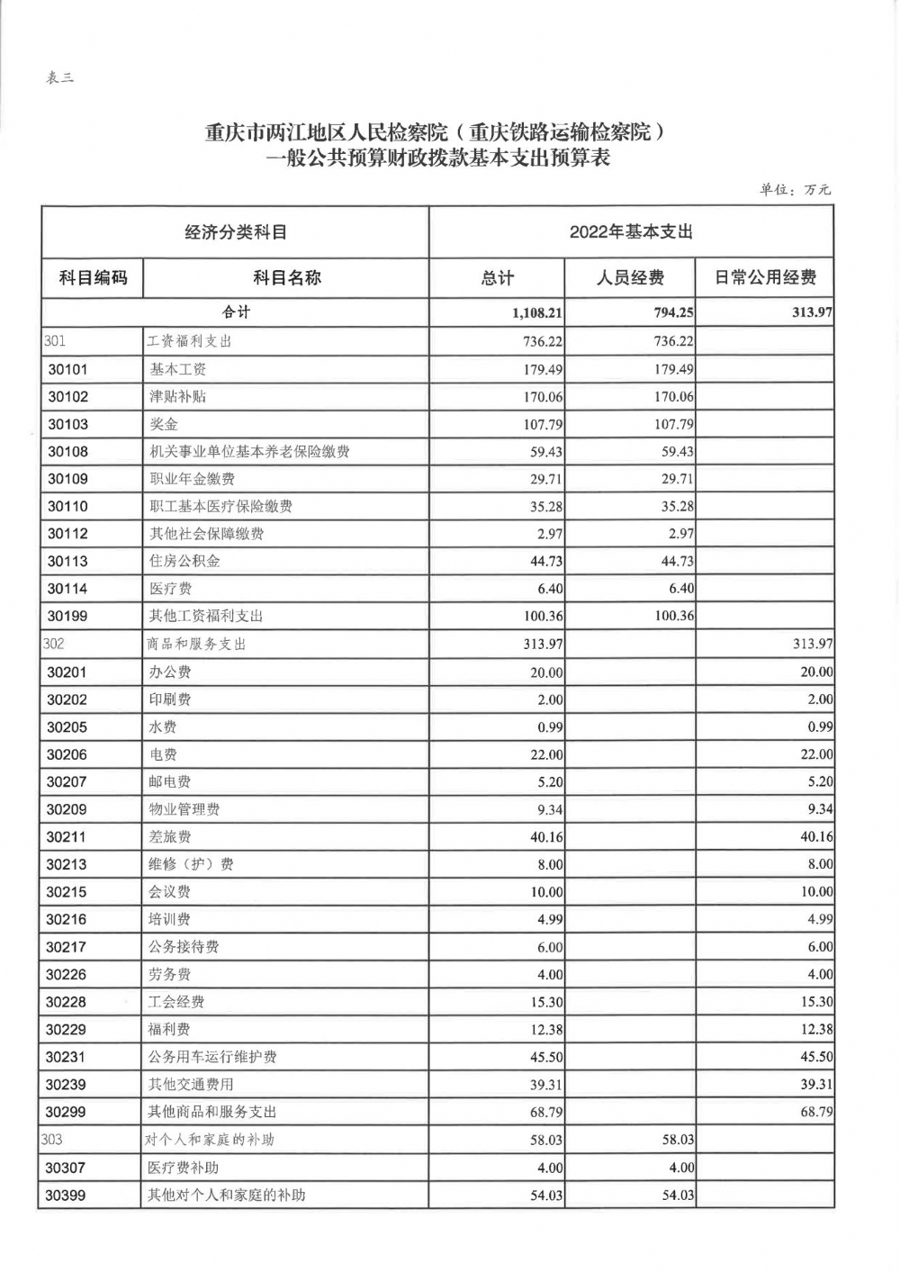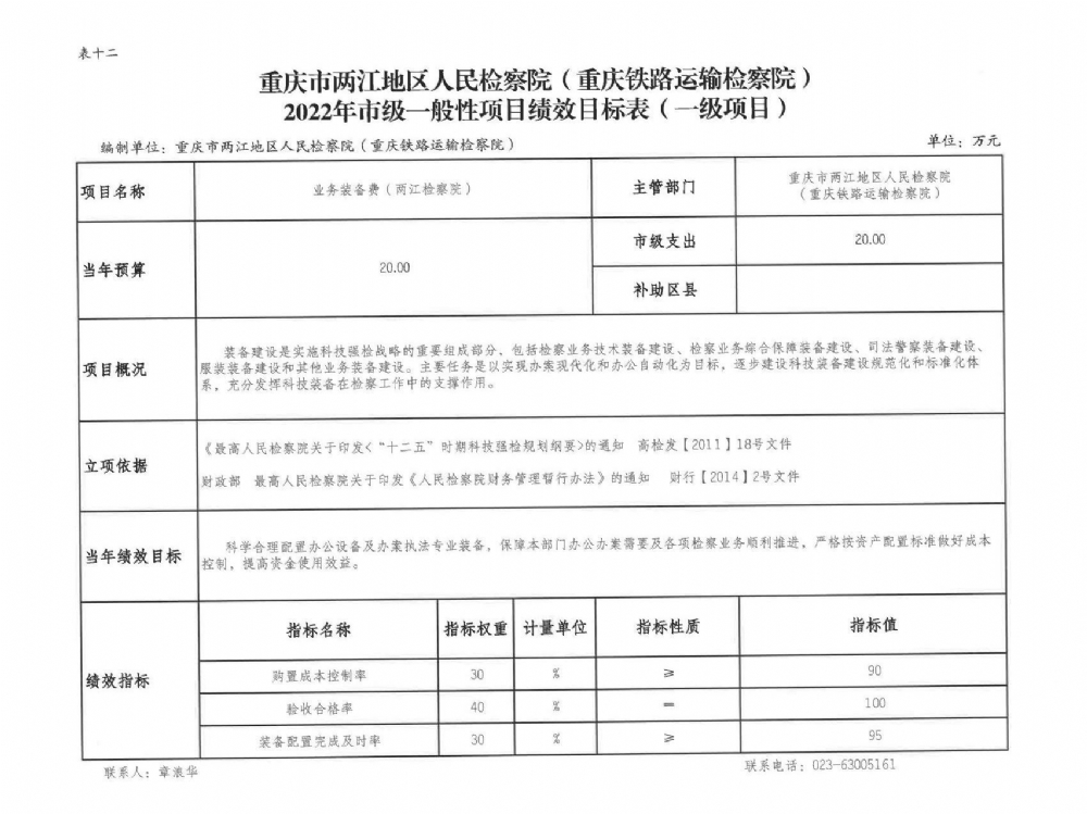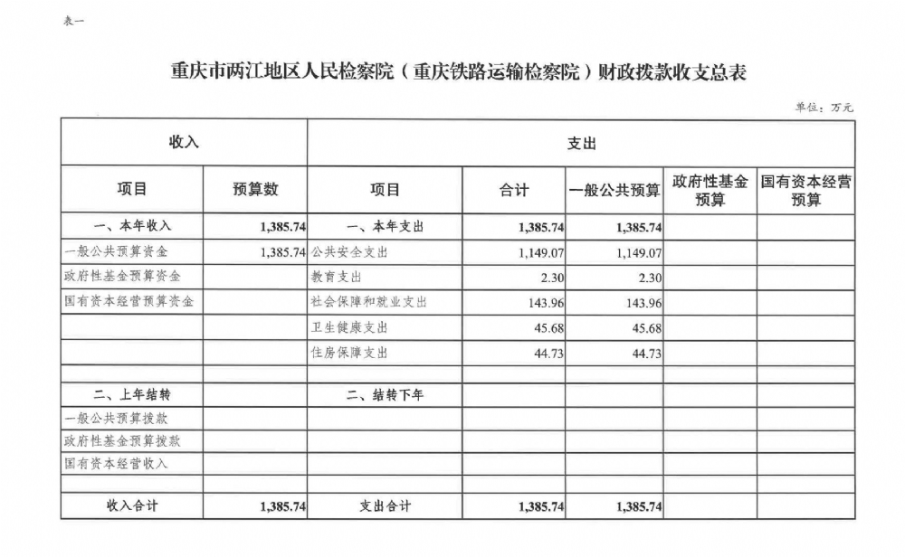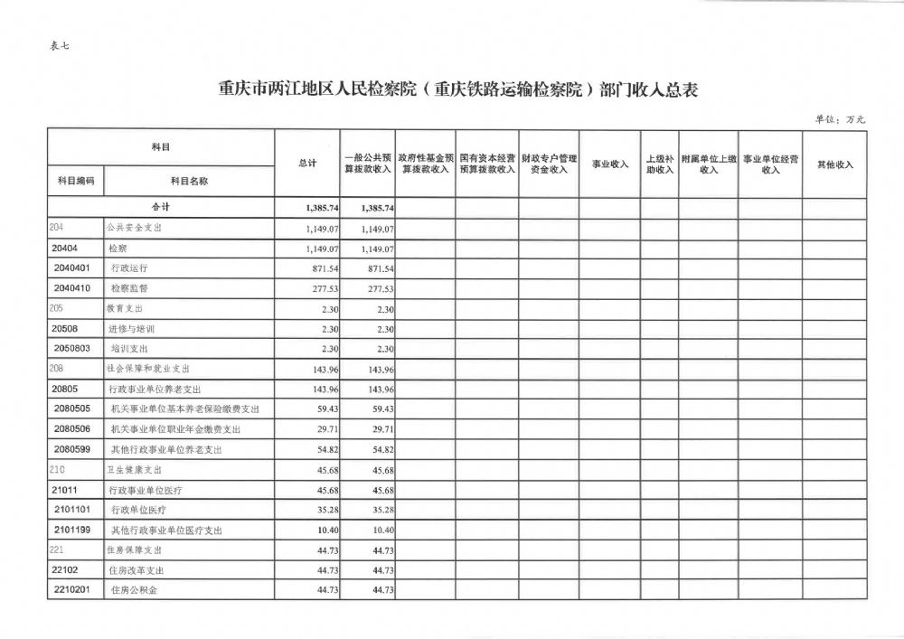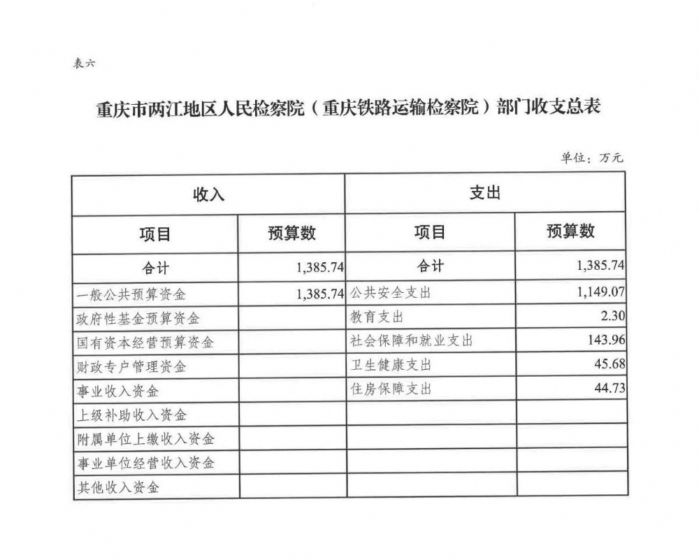 重庆市两江地区人民检察院(重庆铁路运输检察院)2022年部门预算