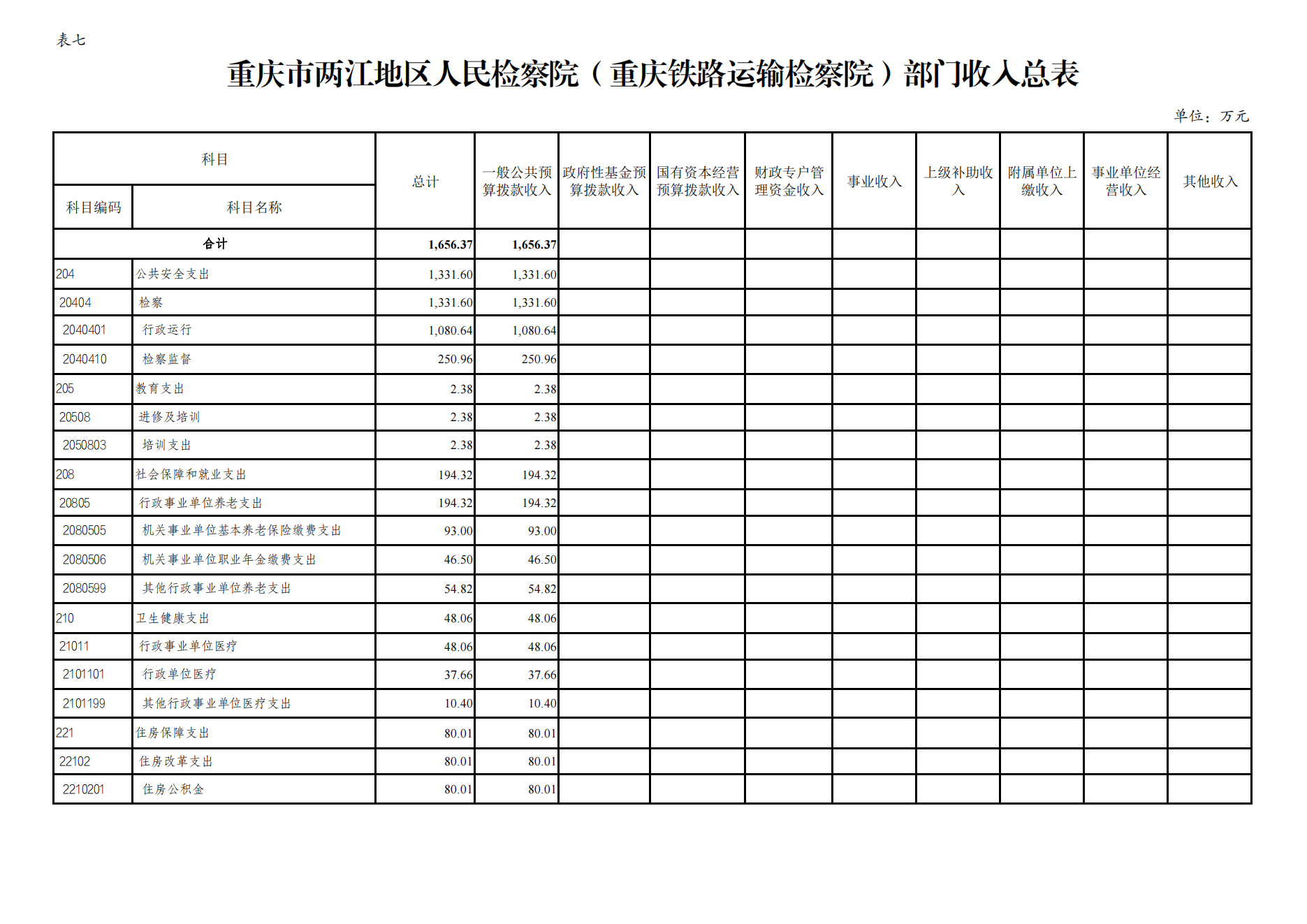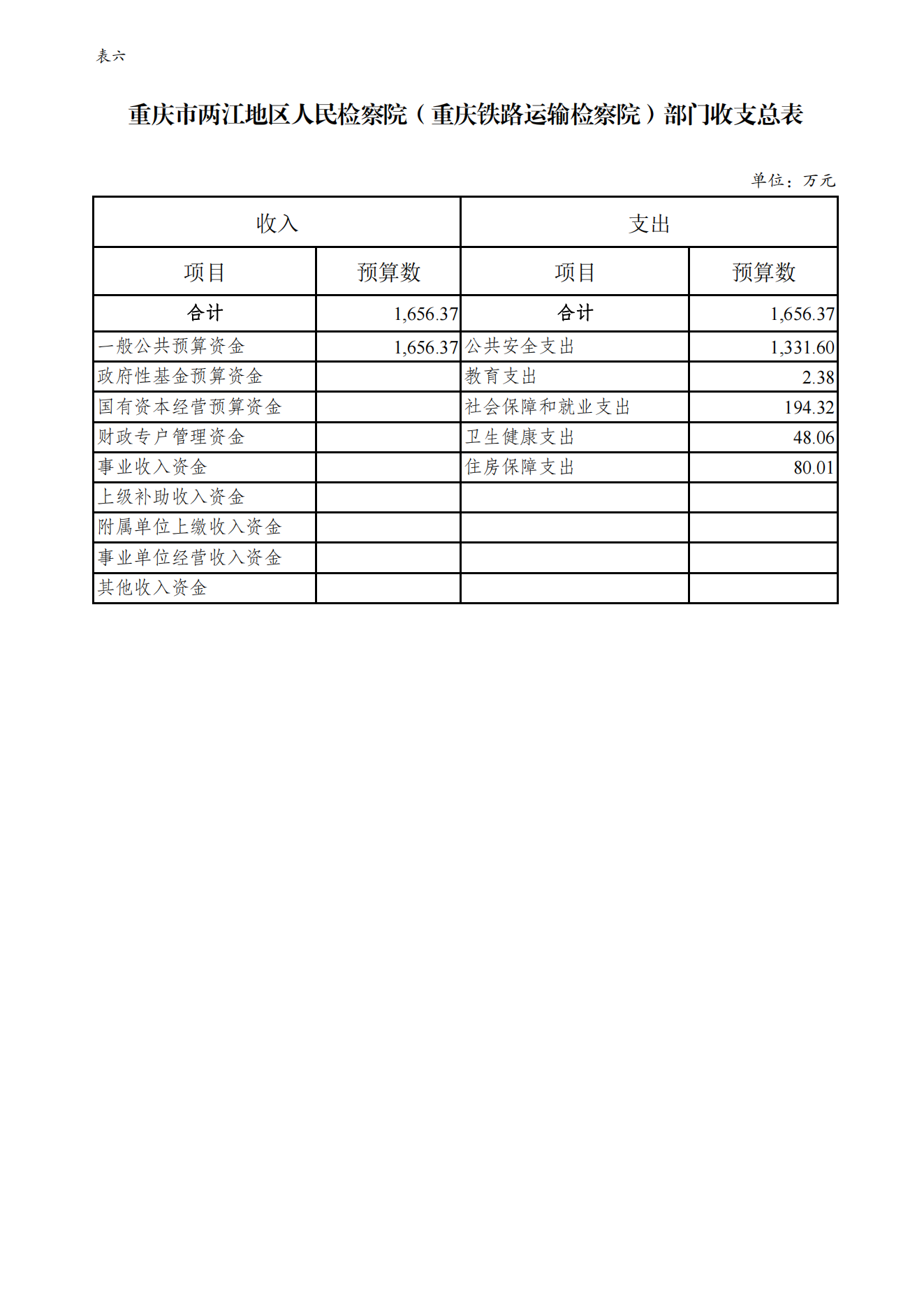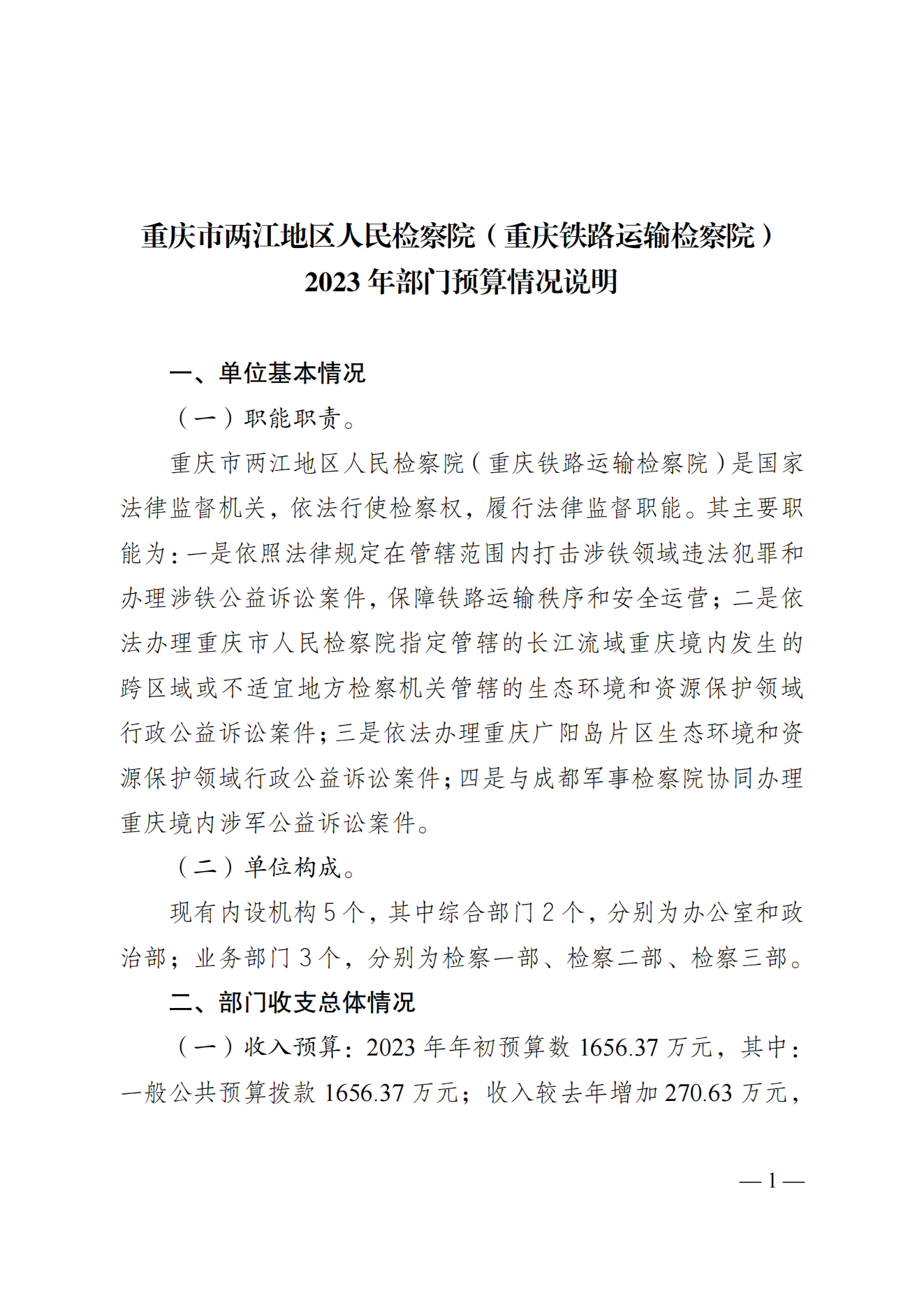 重庆市两江地区人民检察院(重庆铁路运输检察院)2023年预算