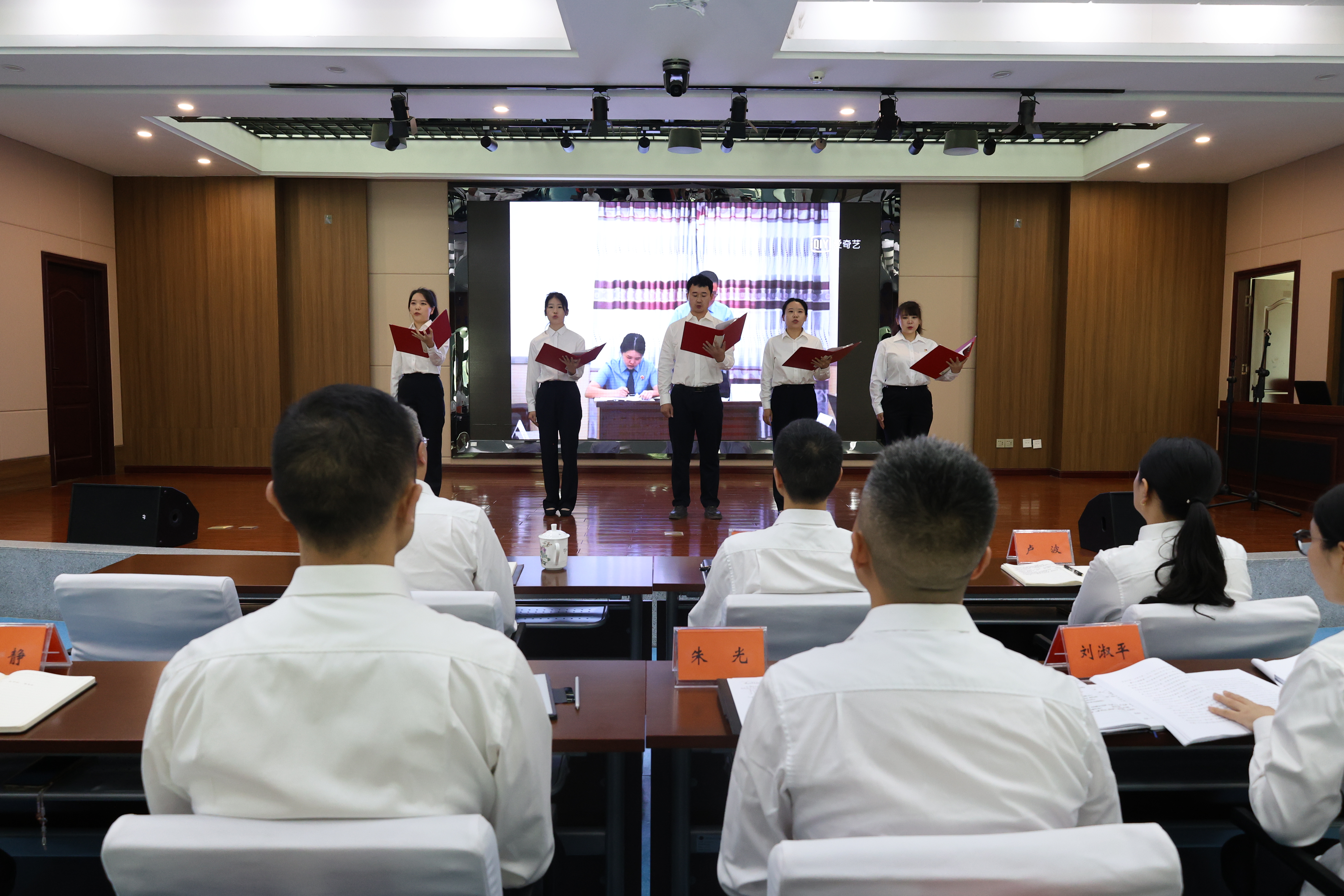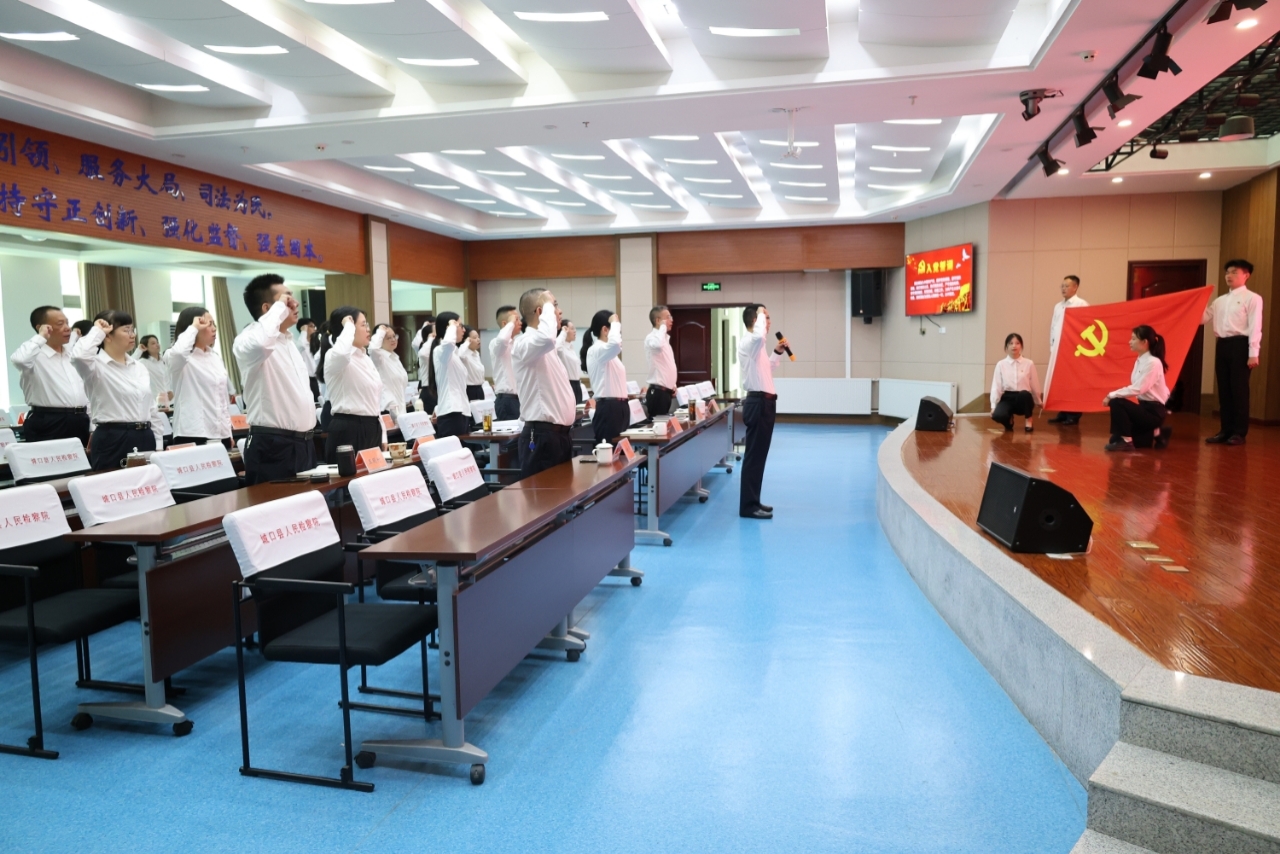 活动在庄严的入党誓词声中拉开帷幕。在院党组书记、检察长张涛同志的领誓下,全体党员面向鲜红党旗,高举右拳,“我志愿加入中国共产党……”铿锵有力的誓言响彻会场。铮铮誓言,字字千钧,激荡着每一位党员的心灵,时刻警醒大家牢记身份、践行使命。