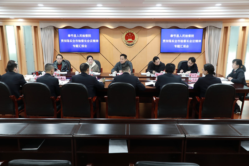 2月22日,奉节县检察院召开贯彻全市检察长会议精神专题汇报会。基层院领导班子和领导干部考核工作第八组组长、市院二级巡视员王鸣隆一行听取该院汇报。市人大代表、重庆移动奉节公司党政中心经理修于茗到会指导。