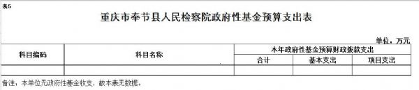 重庆市奉节县人民检察院2018年没有使用政府性基金预算拨款安排的支出。