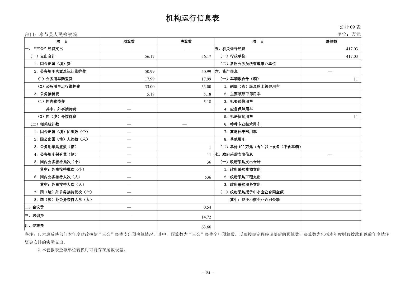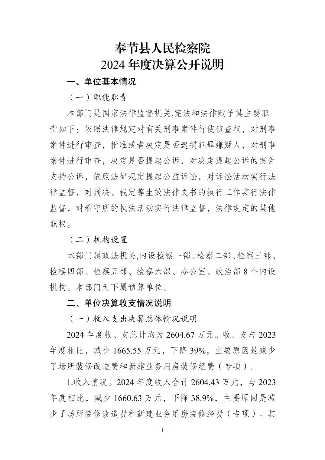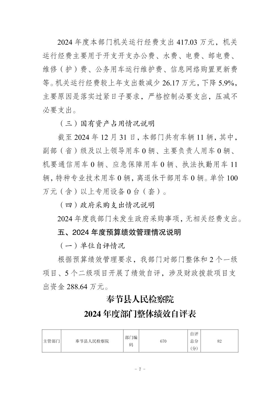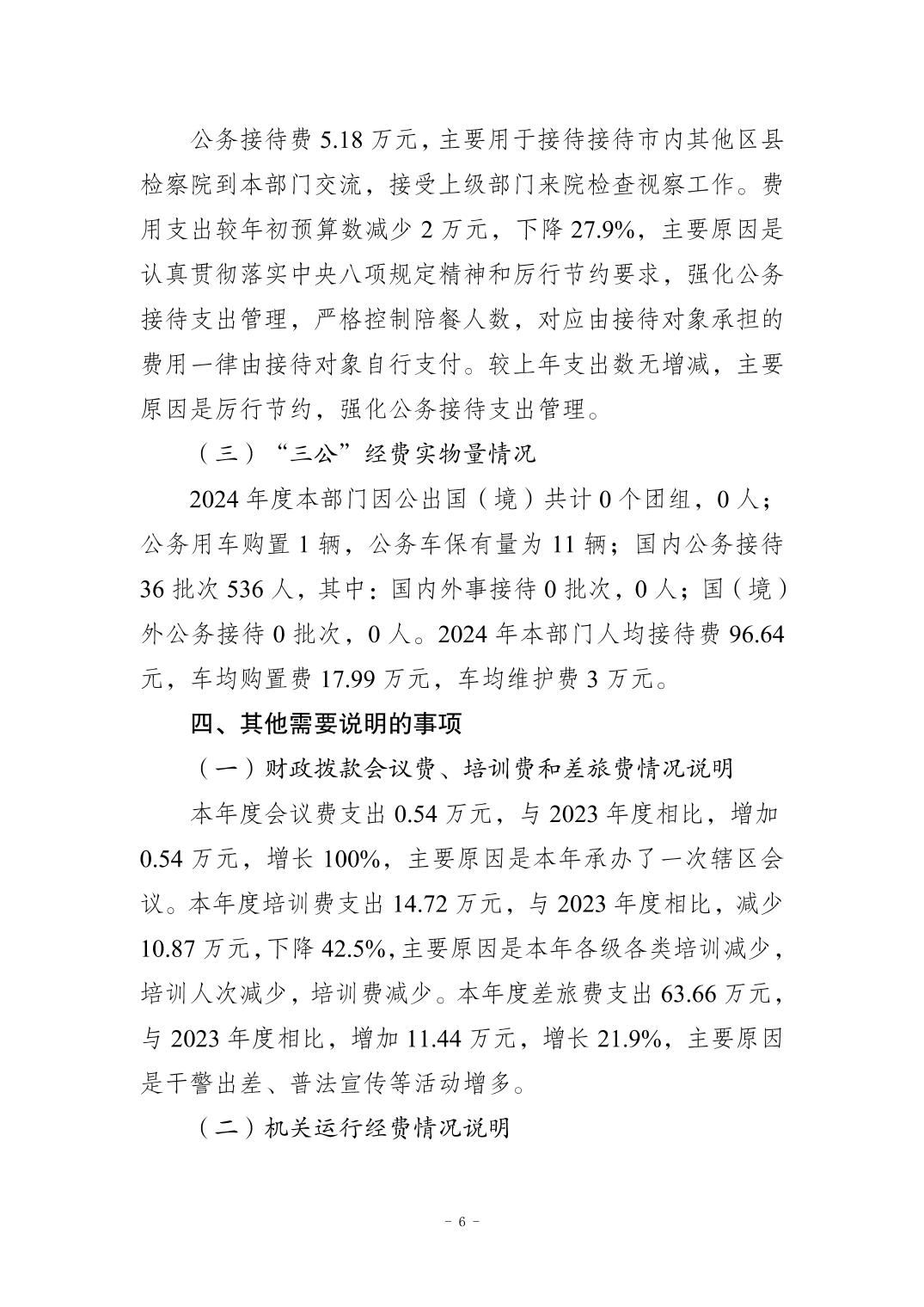 奉节县人民检察院2024年度决算公开说明