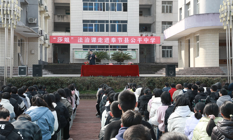 座谈会的同时,奉节县检察院“莎姐”检察官颜纲以“树立宪法和法律意识,远离违法犯罪,做知法、守法、学法、用法的中学生”为主题,围绕未成年人犯罪预防、宪法意识培养等内容,通过案例解析、情景模拟、互动问答的方式,为县公平中学全校师生上了一堂诙谐幽默、寓教于乐的法治课,并向现场学生发放《莎姐讲故事系列图书》。