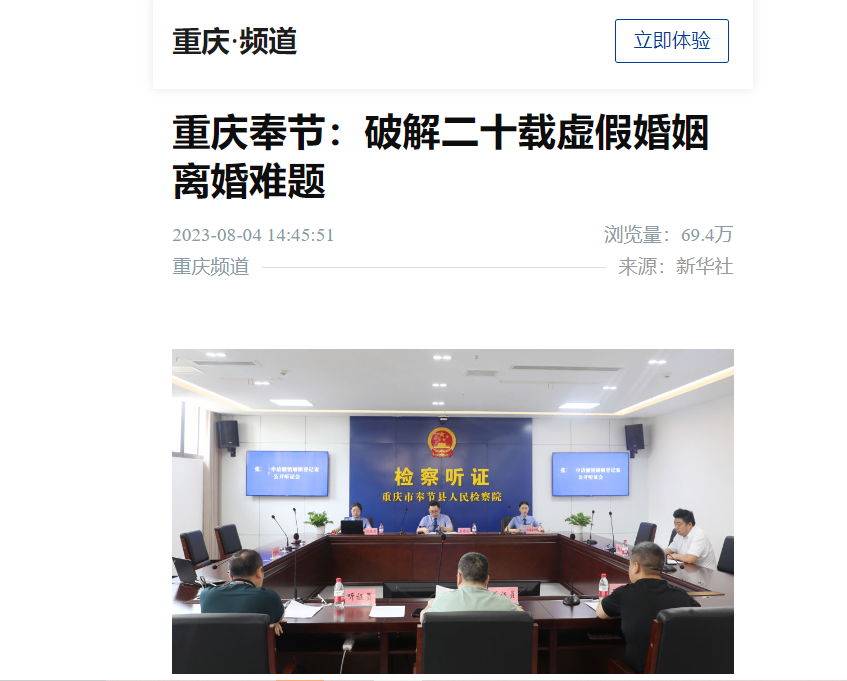 【新华社】:重庆奉节:破解二十载虚假婚姻离婚难题