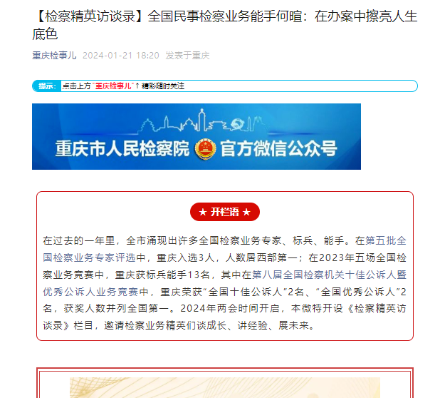 何暄:能有幸获得“全国民事检察业务能手”的原因是多方面的,一是充分依托本院双培双带、双促赛马平台,充分把握在市检察院、分院挂职,以案代训等锻炼机会,在一个个平台上磨砺自身,在一次次锻炼中渲染底色,不断提升自我综合素能。二是保持解决问题研究问题的探索欲,在司法办案中积极发现问题、思考问题、解决问题,不断把遇到的小问题放到更广的司法实践中思索,以点见面、举一反三,强化自身法律思维的深度和广度。三是坚持理念思维与司法实践的融会贯通,跳出就案办案的思维局限,强化案件办理效果导向,持续更新监督理念,精准履行监督职责,切实把高质效办好每一个案件的要求落实到办案中。