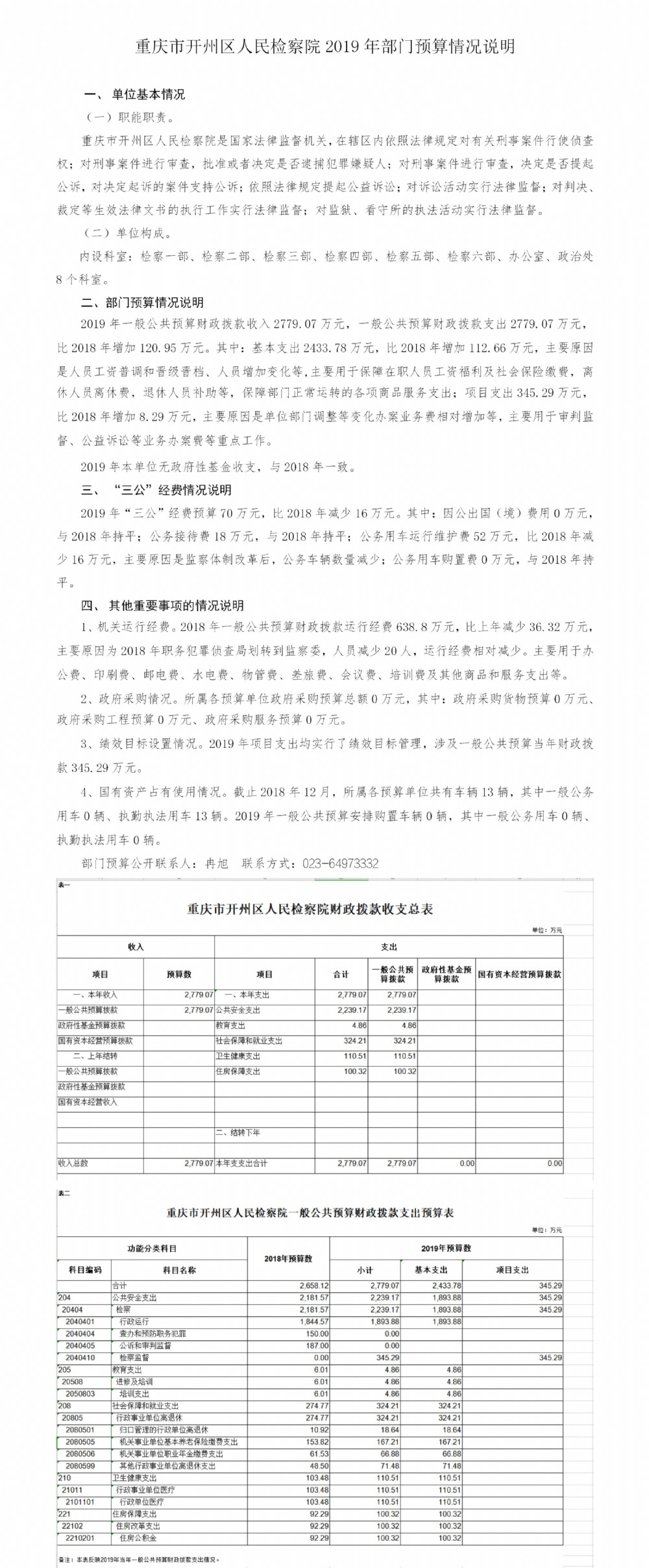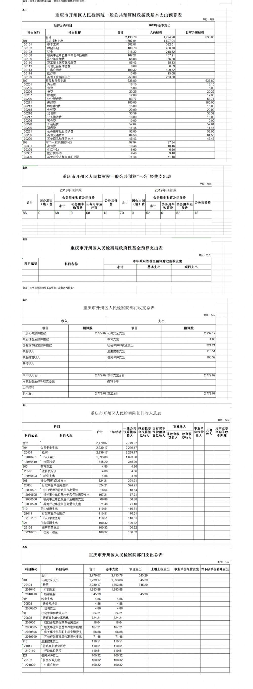 重庆市开州区人民检察院2019年部门预算情况说明