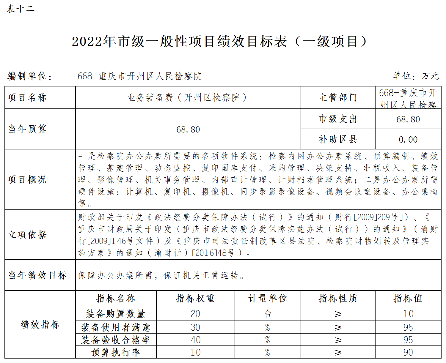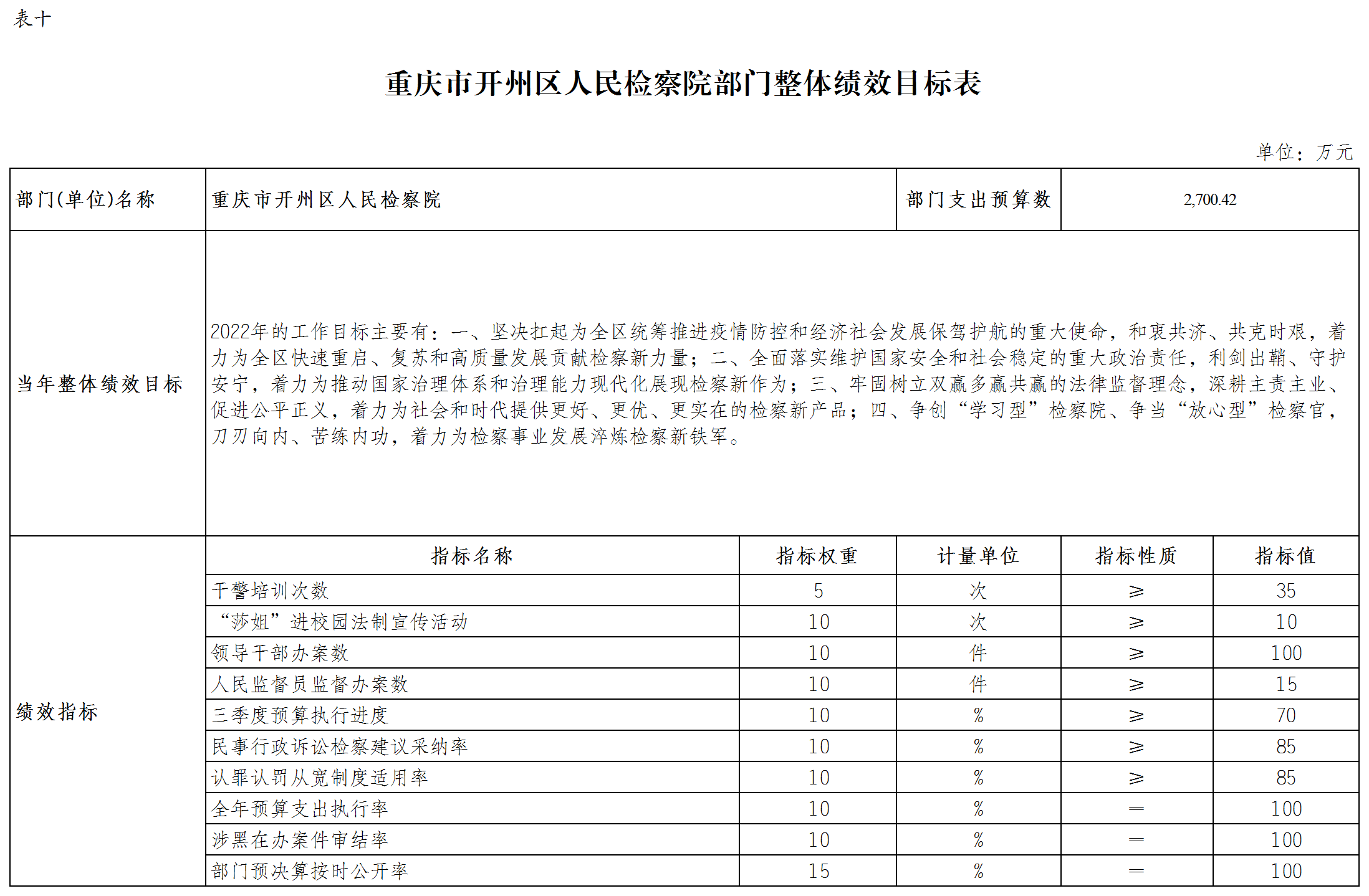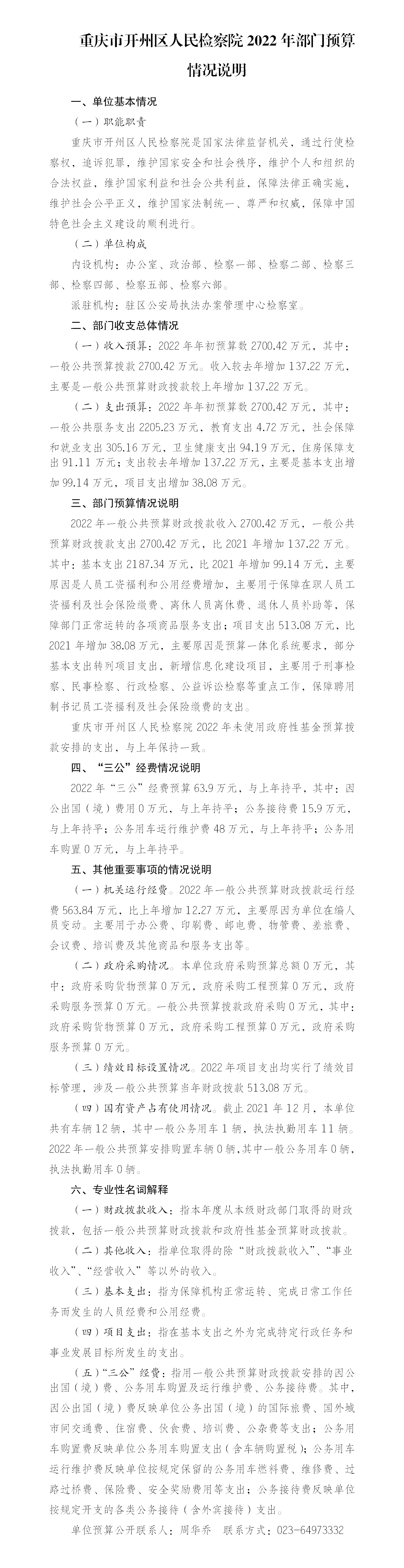 重庆市开州区人民检察院2022年部门预算情况说明