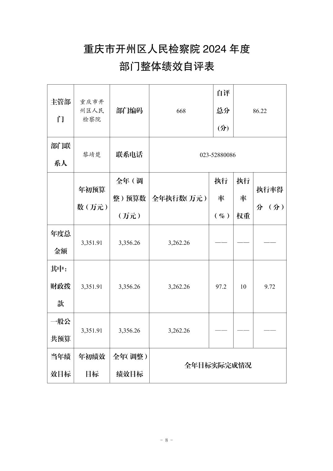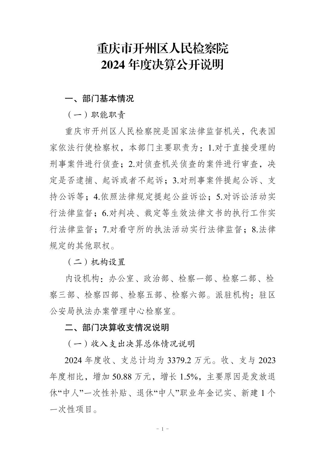 重庆市开州区人民检察院2024年度部门决算公开