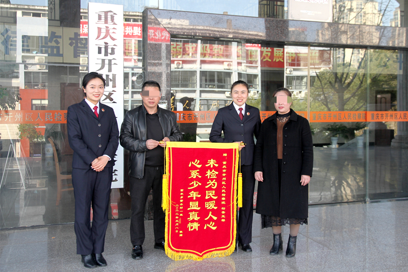 3月8日,确定监护权申请人傅某某夫妇向开州区检察院检察五部赠送锦旗。