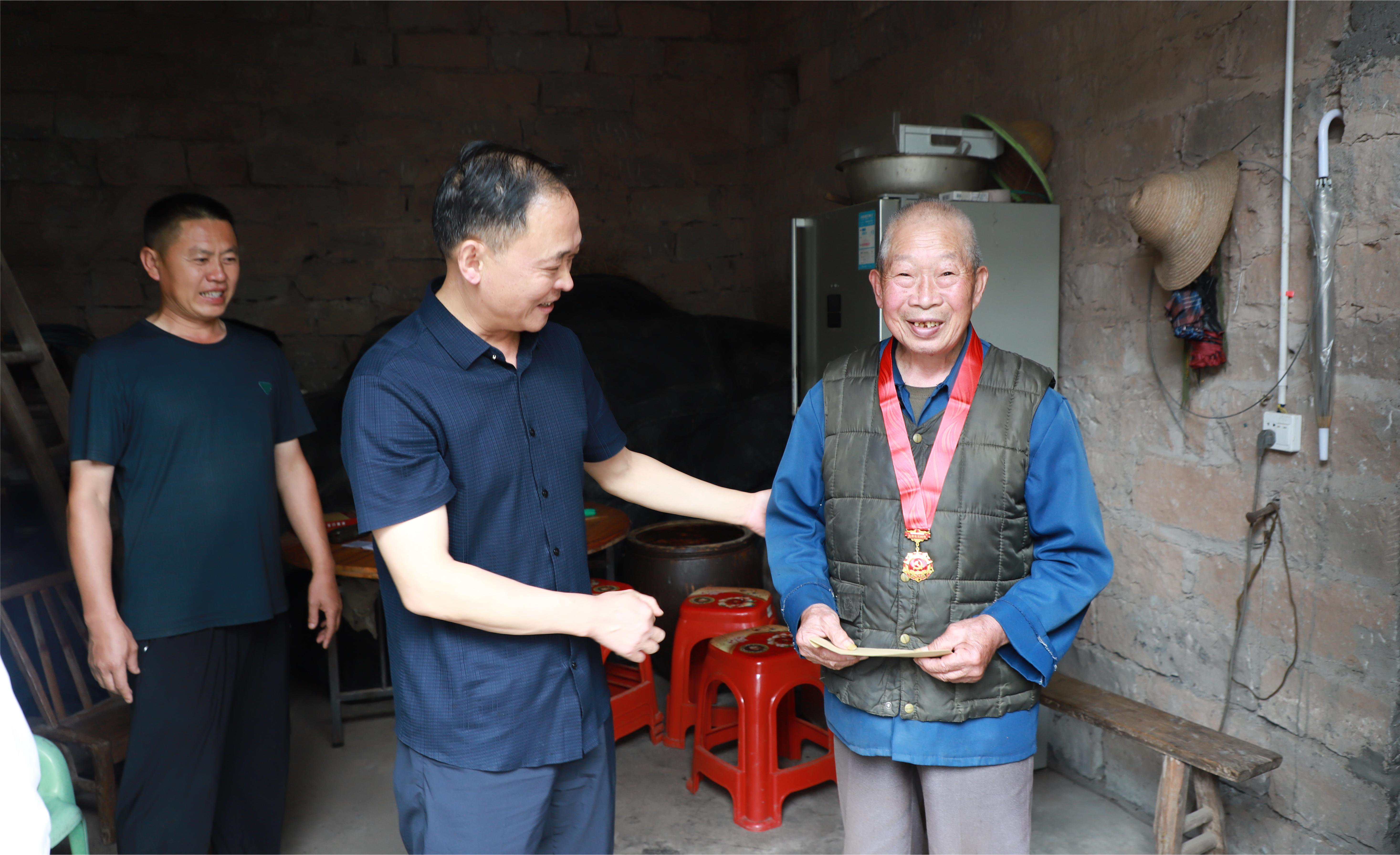 6月27日,我院党组书记、检察长杨德伟一行赴大德镇调研“民主法治示范村”建设工作并走访慰问老党员,院党组成员、政治部主任熊海清、驻村工作队陪同。大德镇党委书记张俊、人大主席吴辉、党委副书记谭雪梅、组织委员杜艳春参加。杨德伟检察长首先到大德镇三树村看望慰问老党员詹万兴,并向其颁发“光荣在党50年”纪念章。