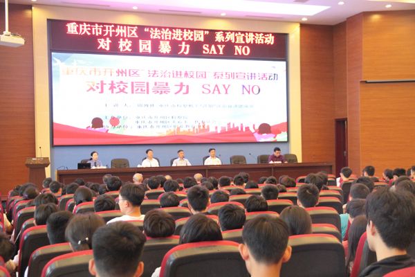 为进一步增强法制教育渗透力、吸引力和感染力,丰富普法教育形式,促进青少年健康成长,4月24日上午,开州区检察院“莎姐”普法讲师团成员及该院离退休党支部党员代表,联合该区关工委开展“送法进校园”活动,为区职业教育中心近800名师生带来了一堂生动的法治教育课。