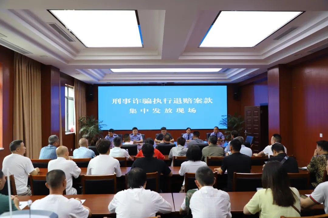 “梁某公司利用合法公司的外壳,从事诈骗行为,所有收益均为诈骗行为所得,应当作为赃款退赔。”刑事执行检察官何道勇随即开展调查核实,监督冻结梁某公司在银行的存款1229万元。最终法院采纳开州区检察院意见,将该笔款项全部认定为赃款退赔给被害人。与此同时,该院还通过驻所检察室与罪犯开展谈心谈话,引导部分罪犯退赔40余万元。6月18日上午,公检法召开集中退赔大会,43名涉案被害人收到退赔款1299万元。“没想到判决之后这么快就把钱追回来了,我们企业有了资金,恢复生产经营有盼头了。”时隔多年,面对“失而复得”的钱款,受害人张先生感激地说道。“以‘检’之力,护‘企’前行。开州区检察院将持续依法能动履职、一体综合履职,在依法精准打击涉企犯罪、全流程监督涉企刑事案件中,积极助力企业纾困解难,服务保障企业健康发展。”开州区检察院检察长杨德伟表示。