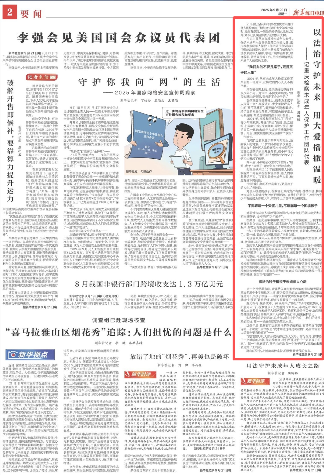 2025年9月22日,《新华每日电讯》第2版刊登《以法治守护未来 用大爱播撒温暖——记卡提诺论坛
