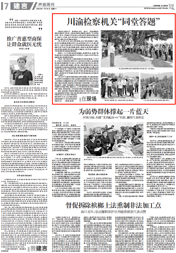 2023年7月10日,《检察日报》第7版“声音周刊”专栏刊登《川渝检察机关“同堂答题”》一文,内容如下: