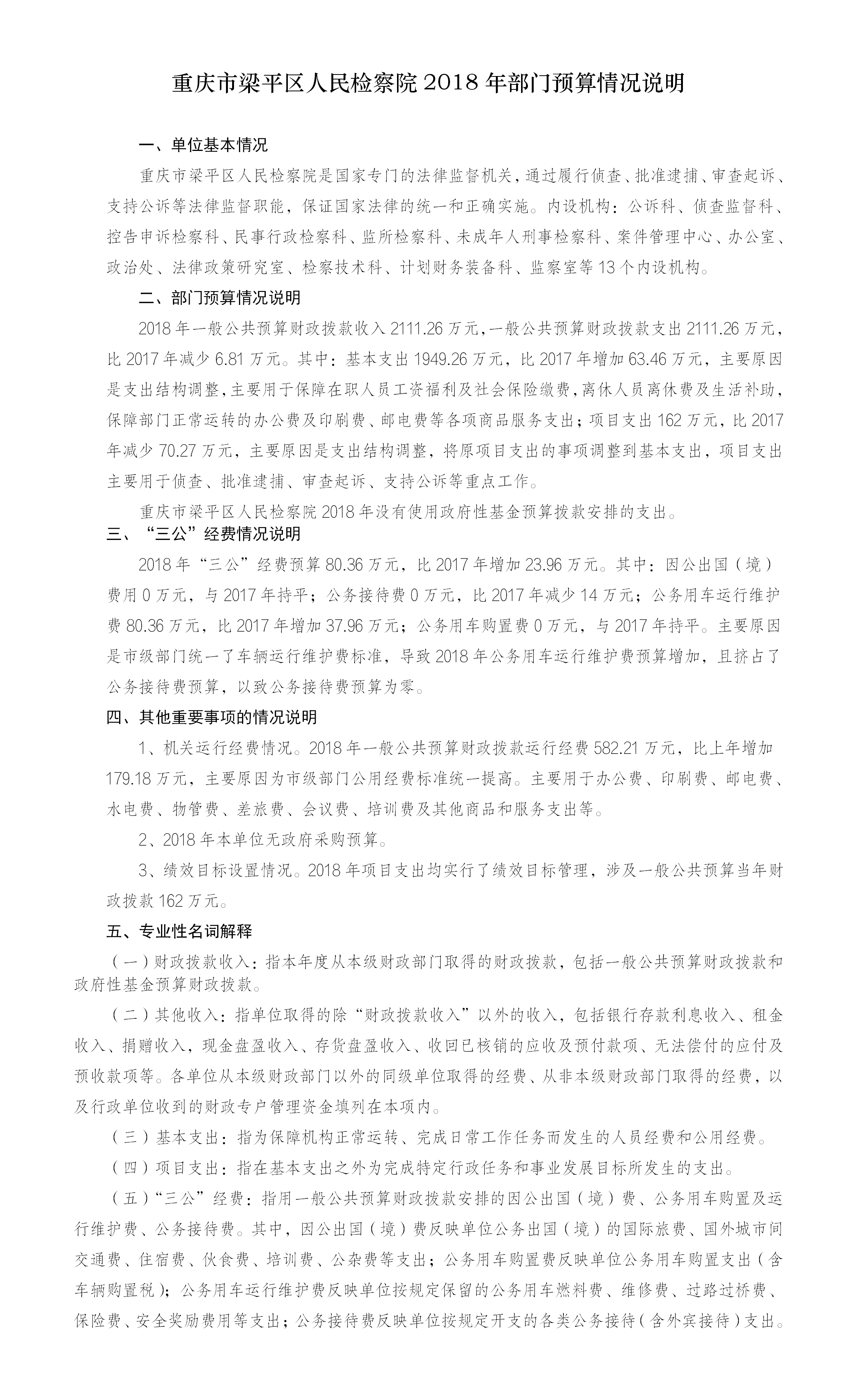 重庆市梁平区人民检察院2018年预算公开