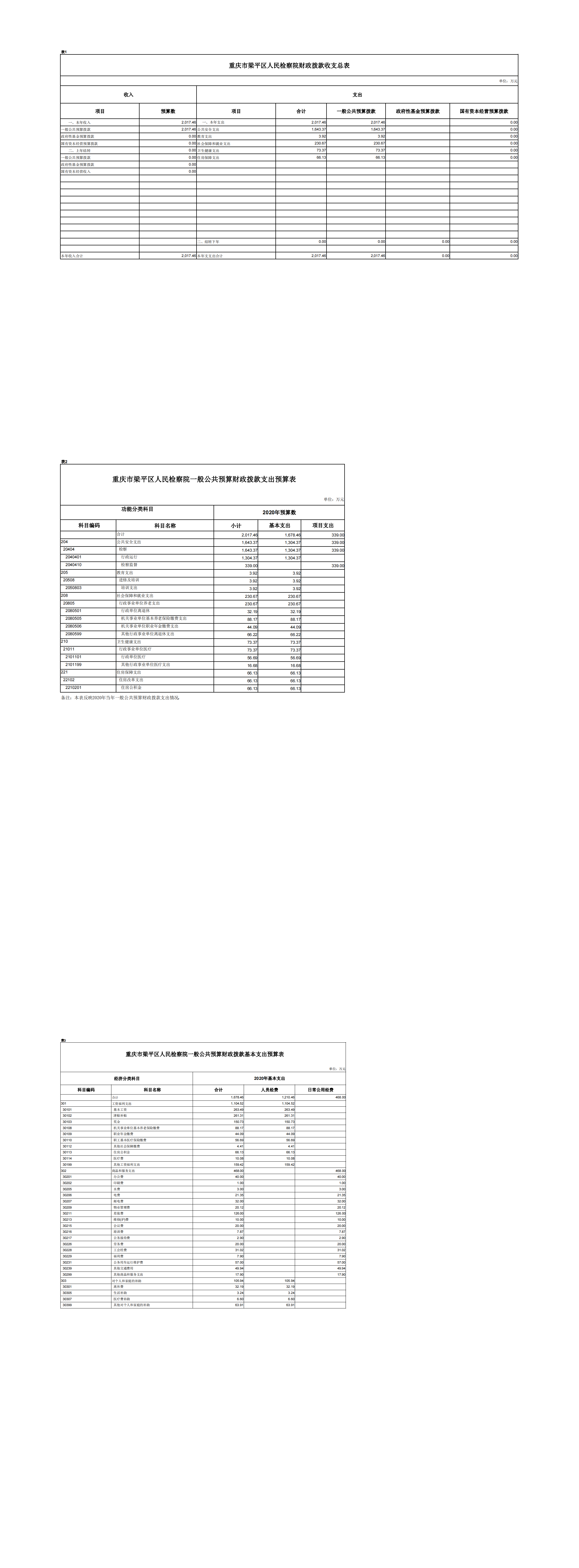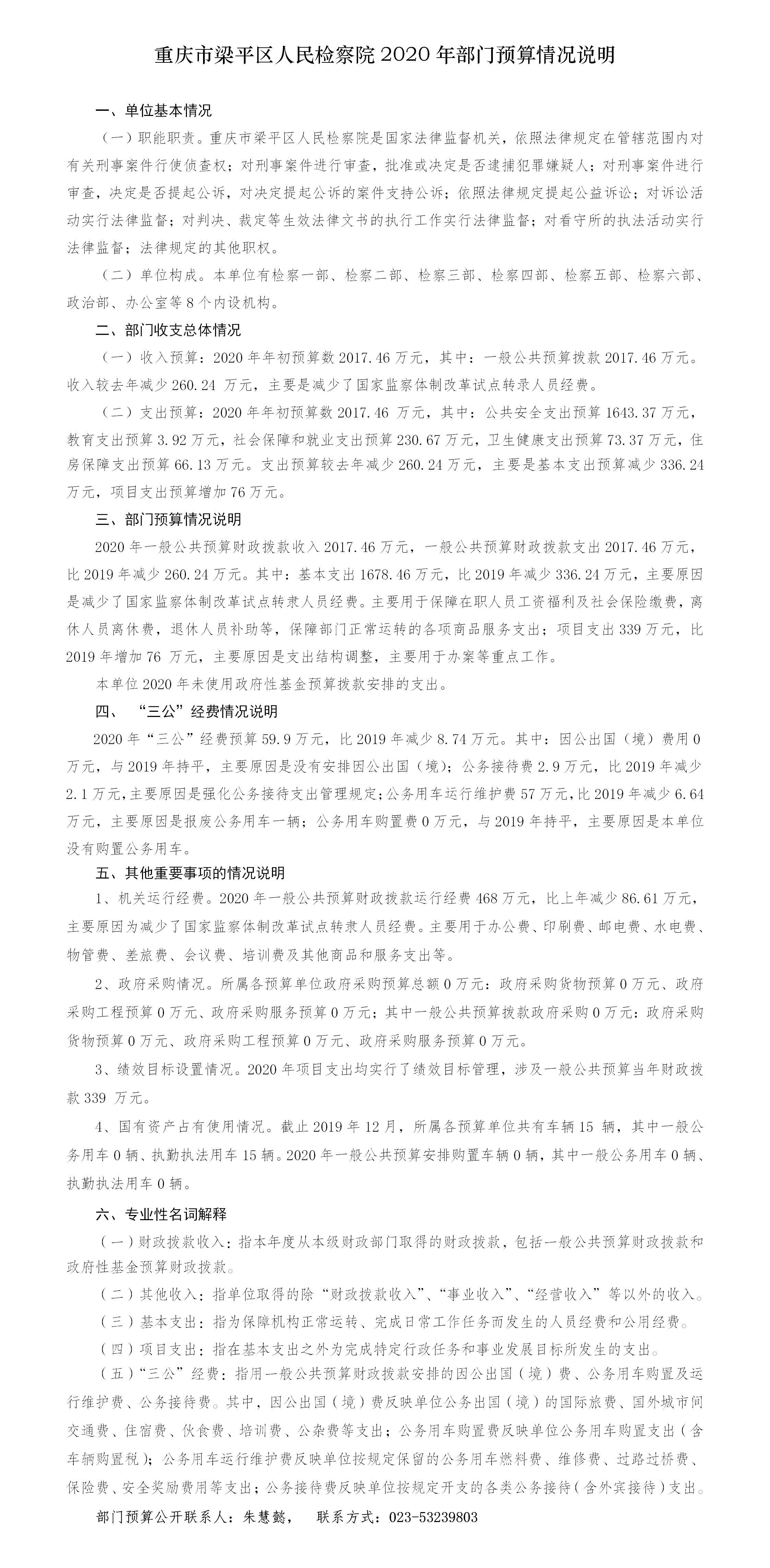 重庆市梁平区人民检察院2020年预算公开