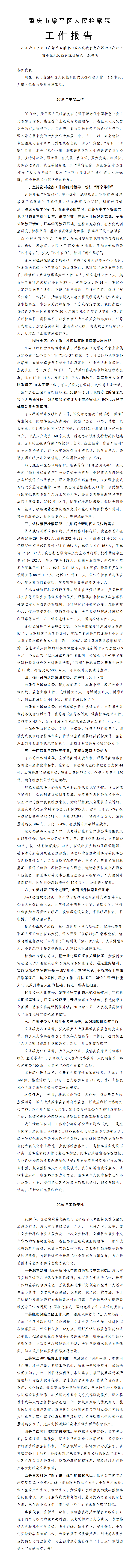 重庆市梁平区人民检察院2019年度工作报告