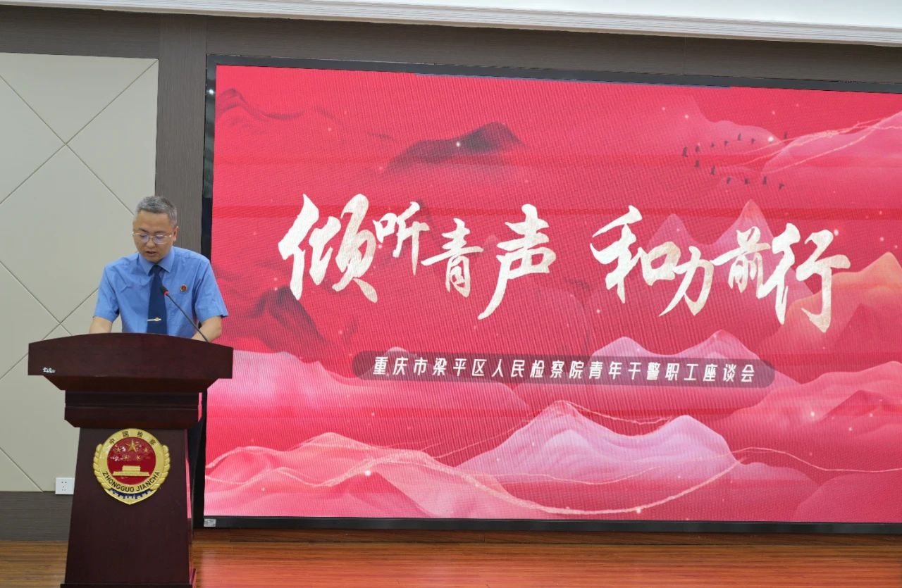 青春逢盛世,奋斗正当时!为深入贯彻新时代检察队伍建设总要求,打造“红岩先锋”变革型组织,不断提升梁平区检察院“知德铸检·先锋领航 ”品牌影响力,凝聚和提振青年检察干警干事创业精神气,提升青年干警“青和力”。8月15日,梁平区人民检察院举办“倾听‘青’声·‘和’力前行”青年干警职工座谈交流活动。活动通过“传帮带”结对、主题研讨和领导寄语等环节,搭建沟通平台,激发青年干警干事创业热情。快来一起回顾精彩瞬间吧!"薪火相传践初心,躬身垂范续华章。"院党组成员、副检察长、青年联合会主席何骏致开场辞。他勉励青年干警要牢记"知德铸检·先锋领航"的品牌精神,在实干中锤炼政治品格,在奋斗中践行检察使命,让青春在法治建设中绽放光芒!在庄重而富有意义的“传帮带”结对仪式上,导师与学员分批上台签订《传帮带协议书》,向学员赠送书籍以示鼓励。“感恩组织搭建成长平台,我们将以导师为榜样,勤学善思、知行合一,早日成为堪当重任的检察尖兵!”学员代表唐杰激动地表示。在随后的座谈交流环节,青年干警们围绕“成长成才”与“高质效发展”分享感悟,碰撞思想。讨论中,“办案要‘求极致’,成长要‘敢破圈’!”、“检察人的青春,就是要在每一个案件中沉淀价值!”等充满朝气的观点引发共鸣。