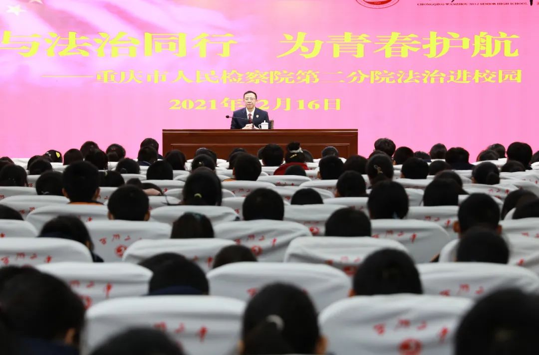为深入贯彻落实习近平总书记关于全面依法治国的重要指示精神,落实“谁执法谁普法”责任制,增强未成年人法治意识,12月16日,二分院党组书记、检察长李大槐到万州区第二高级中学履行法治副校长职责。