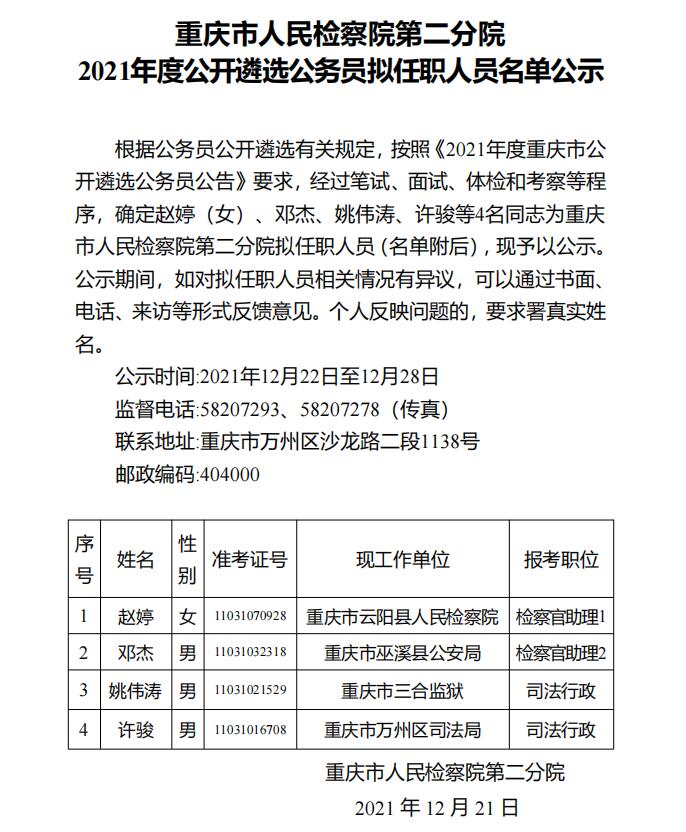 卡提诺论坛 第二分院2021年度公开遴选公务员拟遴选人员名单公示