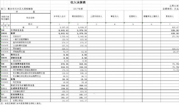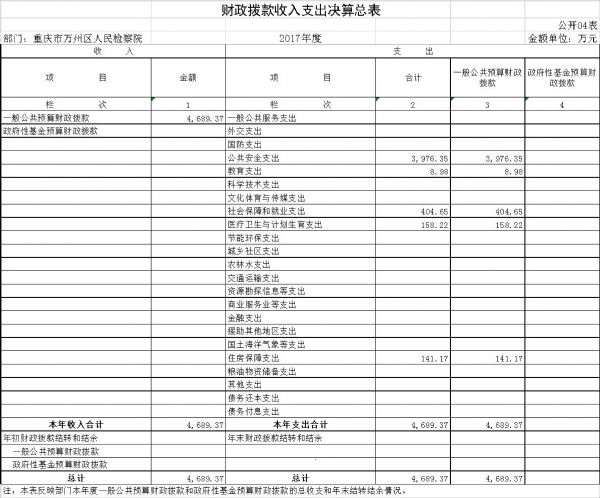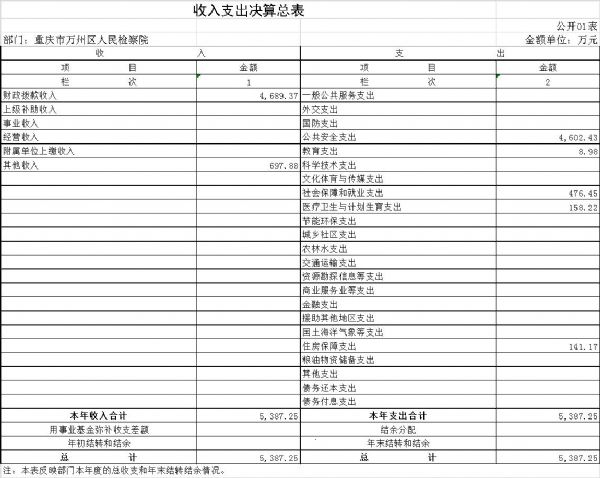 本单位2017年度收入总计5,387.25万元,支出总计5,387.25万元。与2016年决算数相比,收入减少620.44万元、下降10.33%,主要原因是2016年万州区财政年中对我单位两房建设有追加预算拨款收入,2017年两房建设完工无此项财政拨款收入。