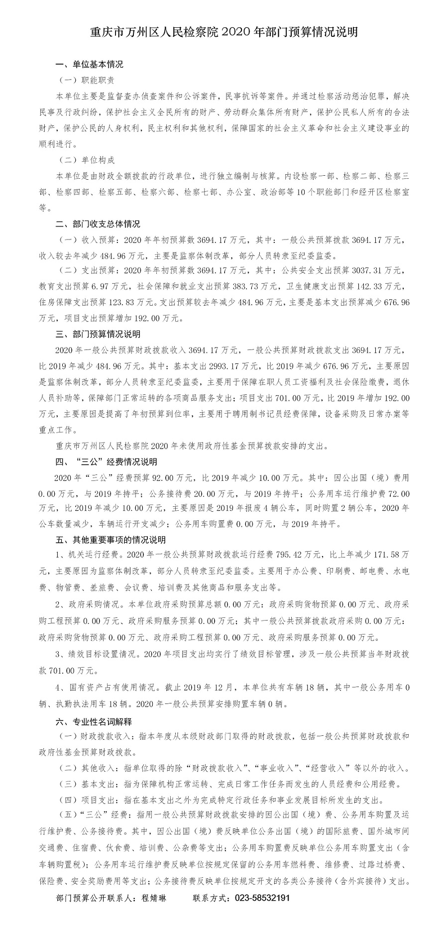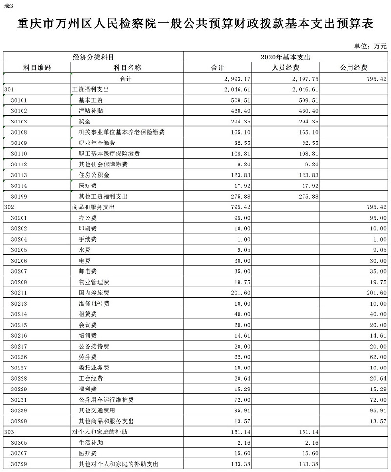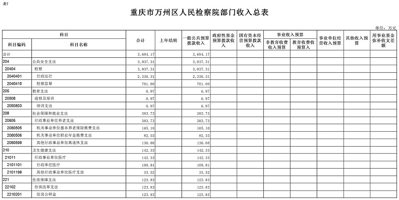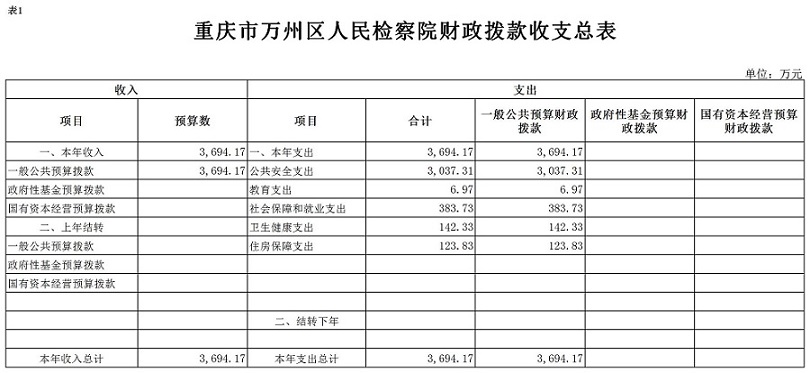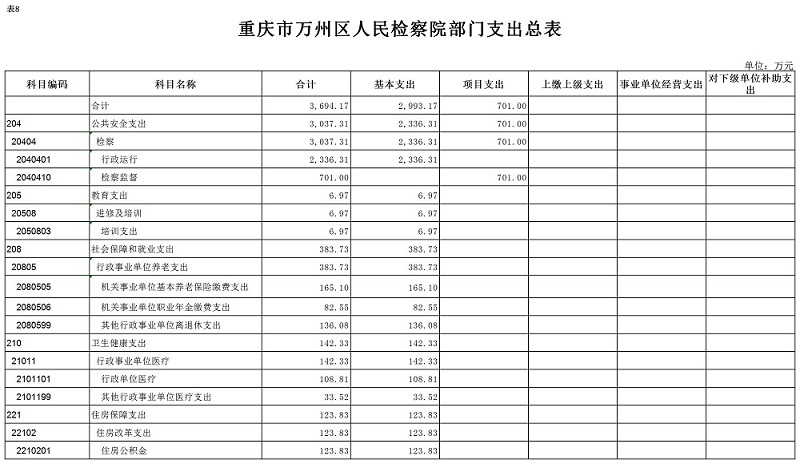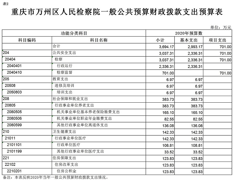 重庆市万州区人民检察院2020年预算公开
