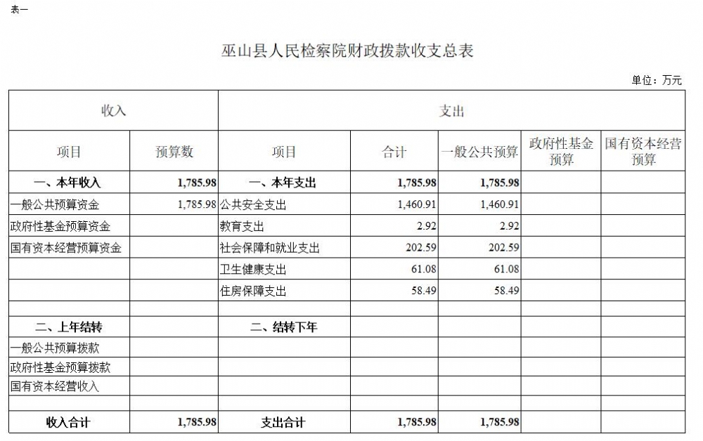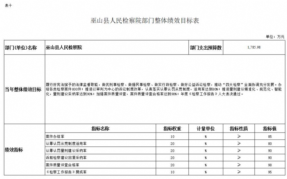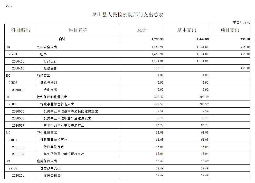 巫山县人民检察院2022年部门预算情况说明