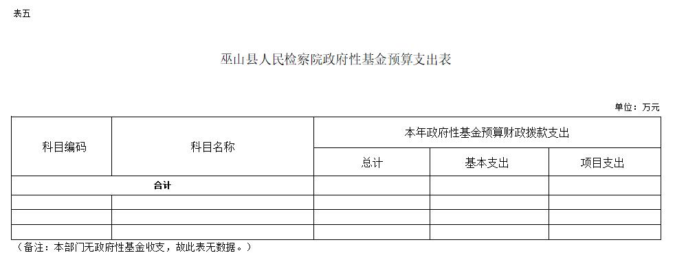 巫山县人民检察院2022年无使用政府性基金预算拨款安排的支出,与2021年保持一致。