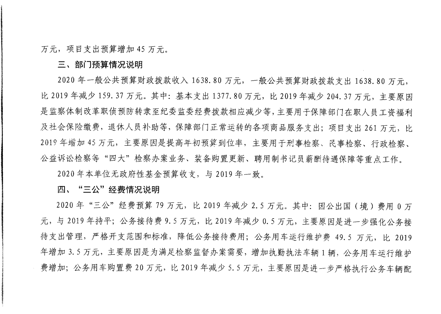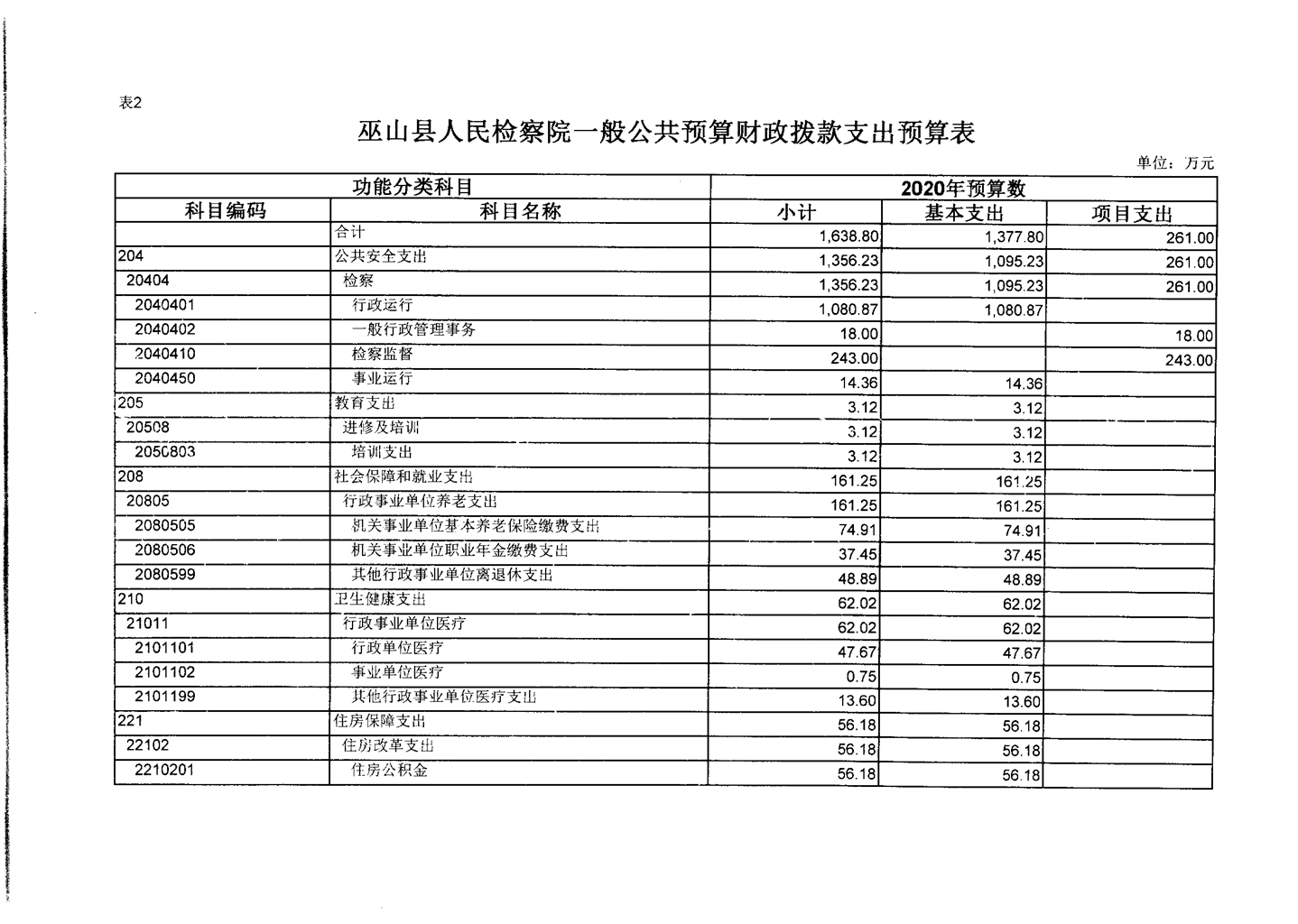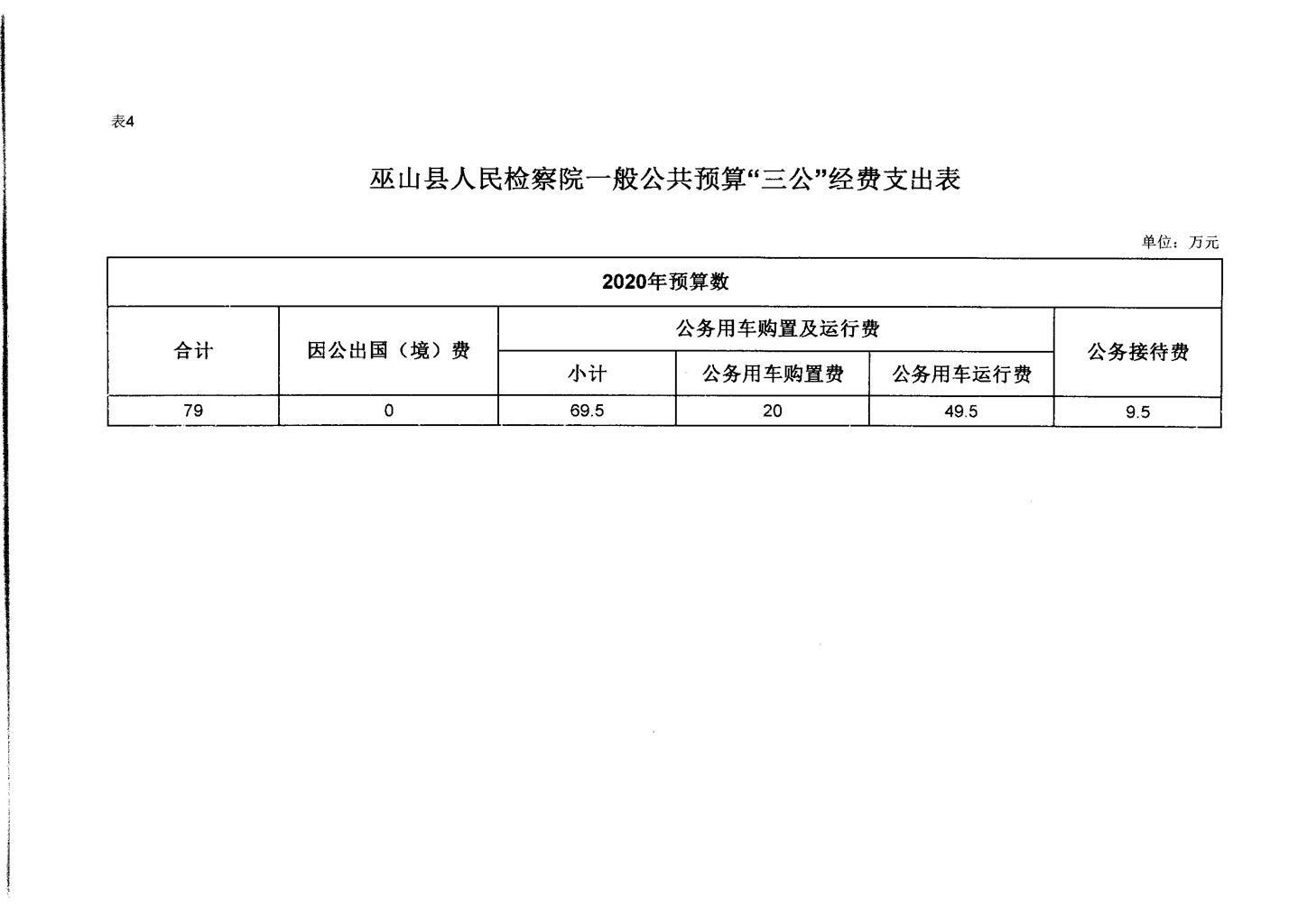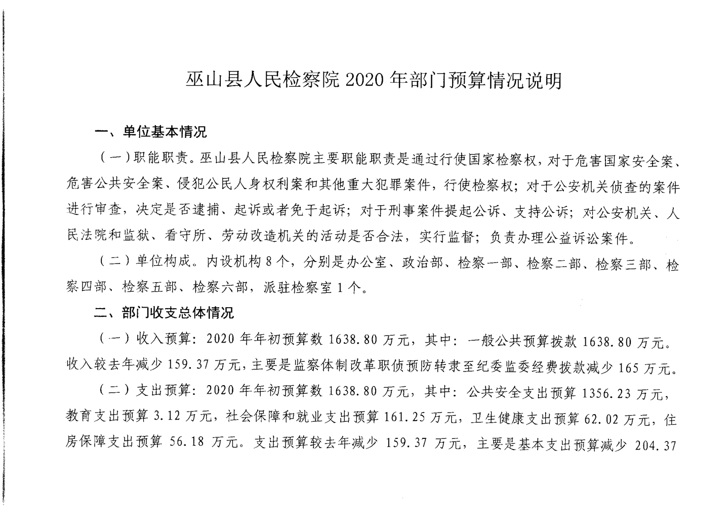 巫山县人民检察院2020年部门预算情况说明