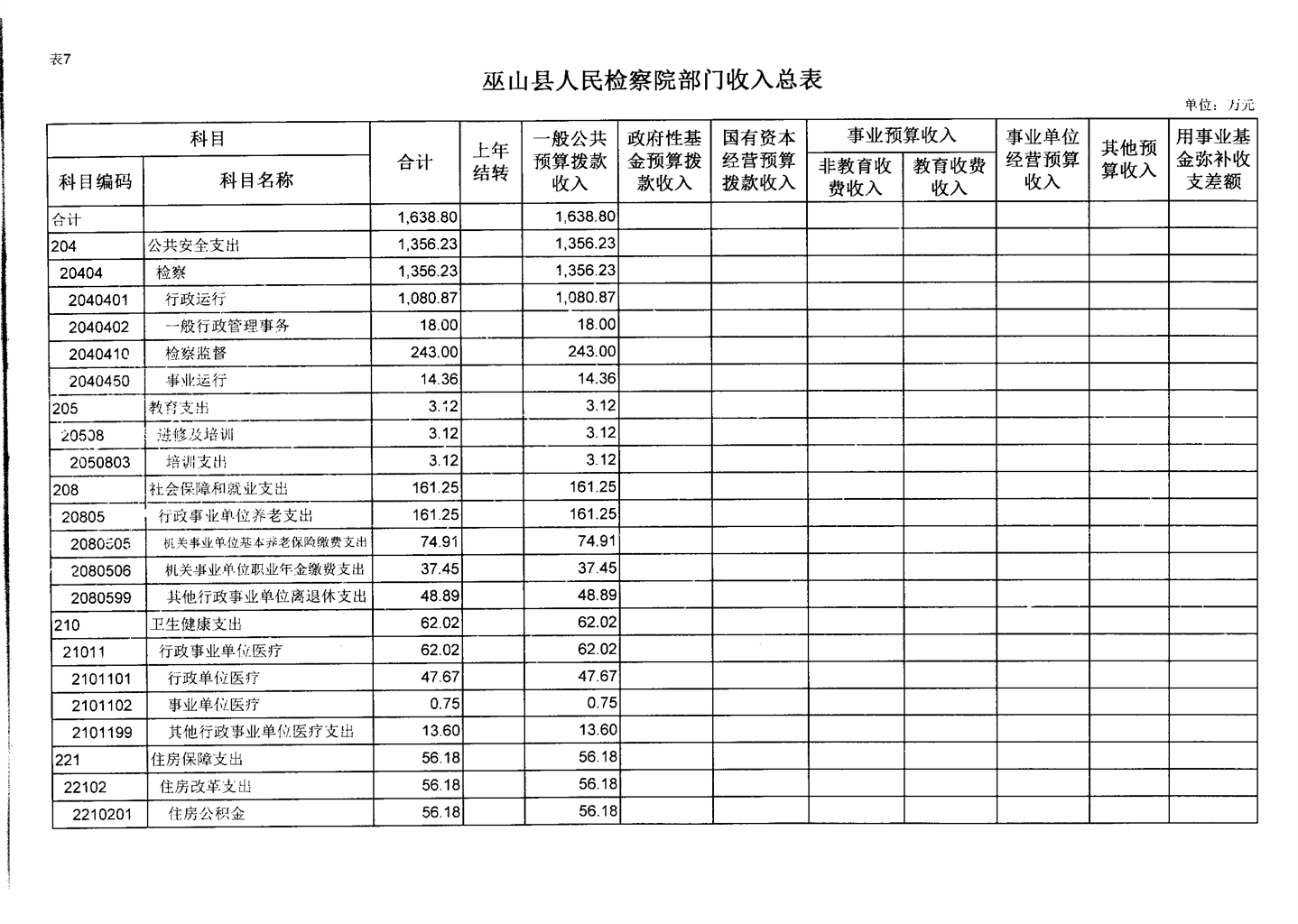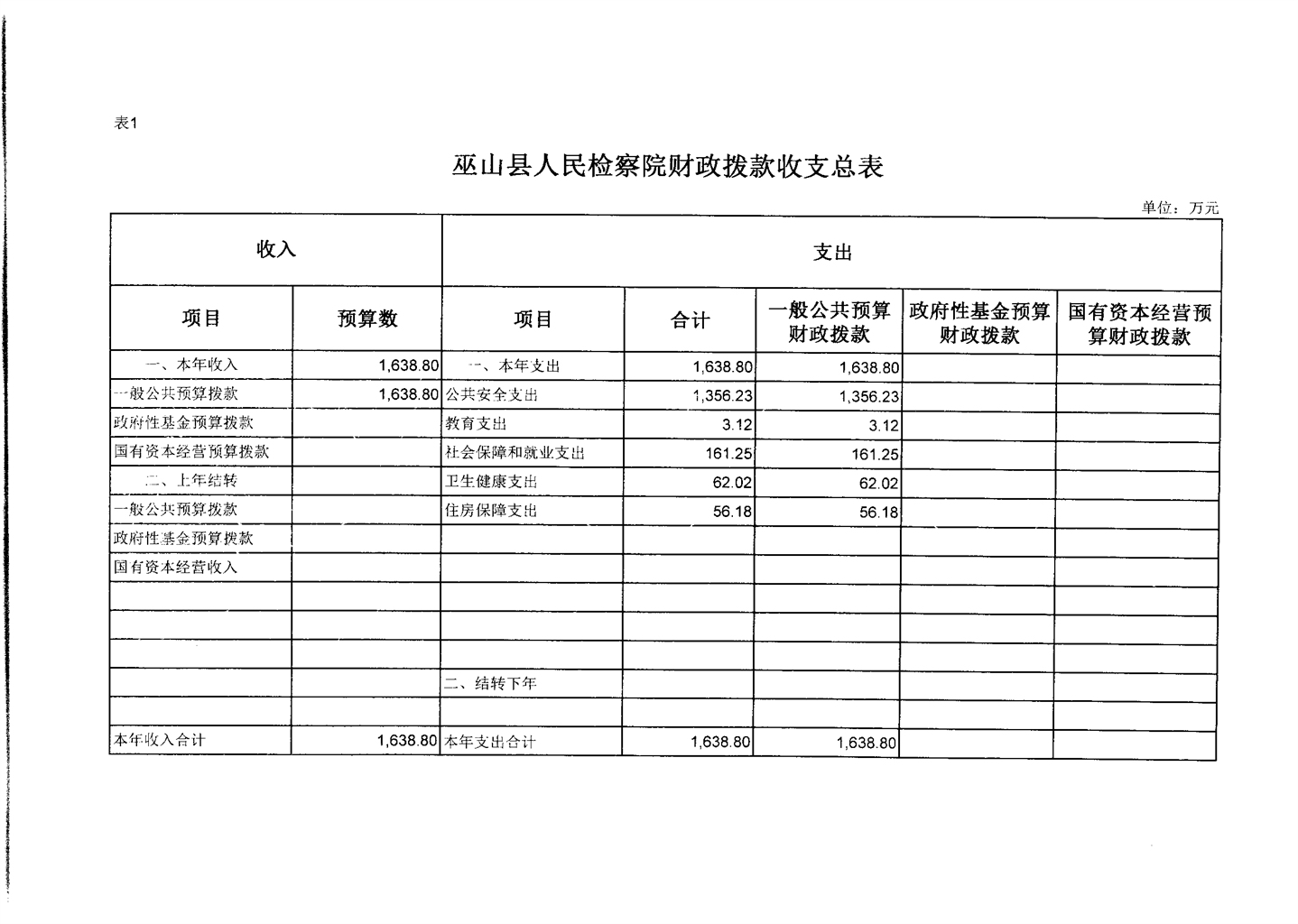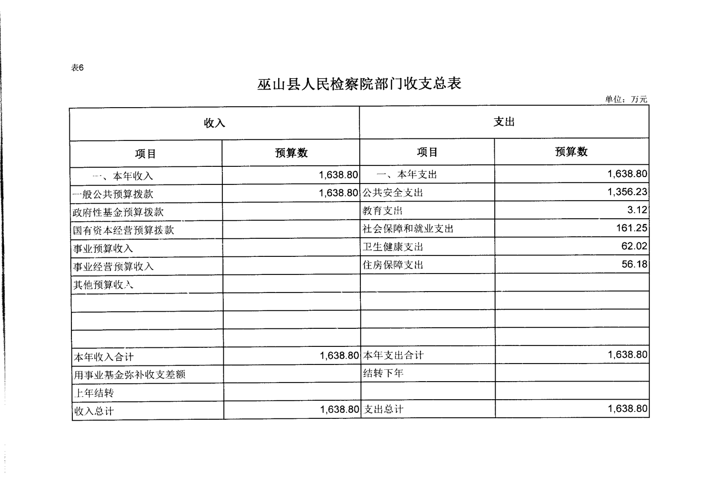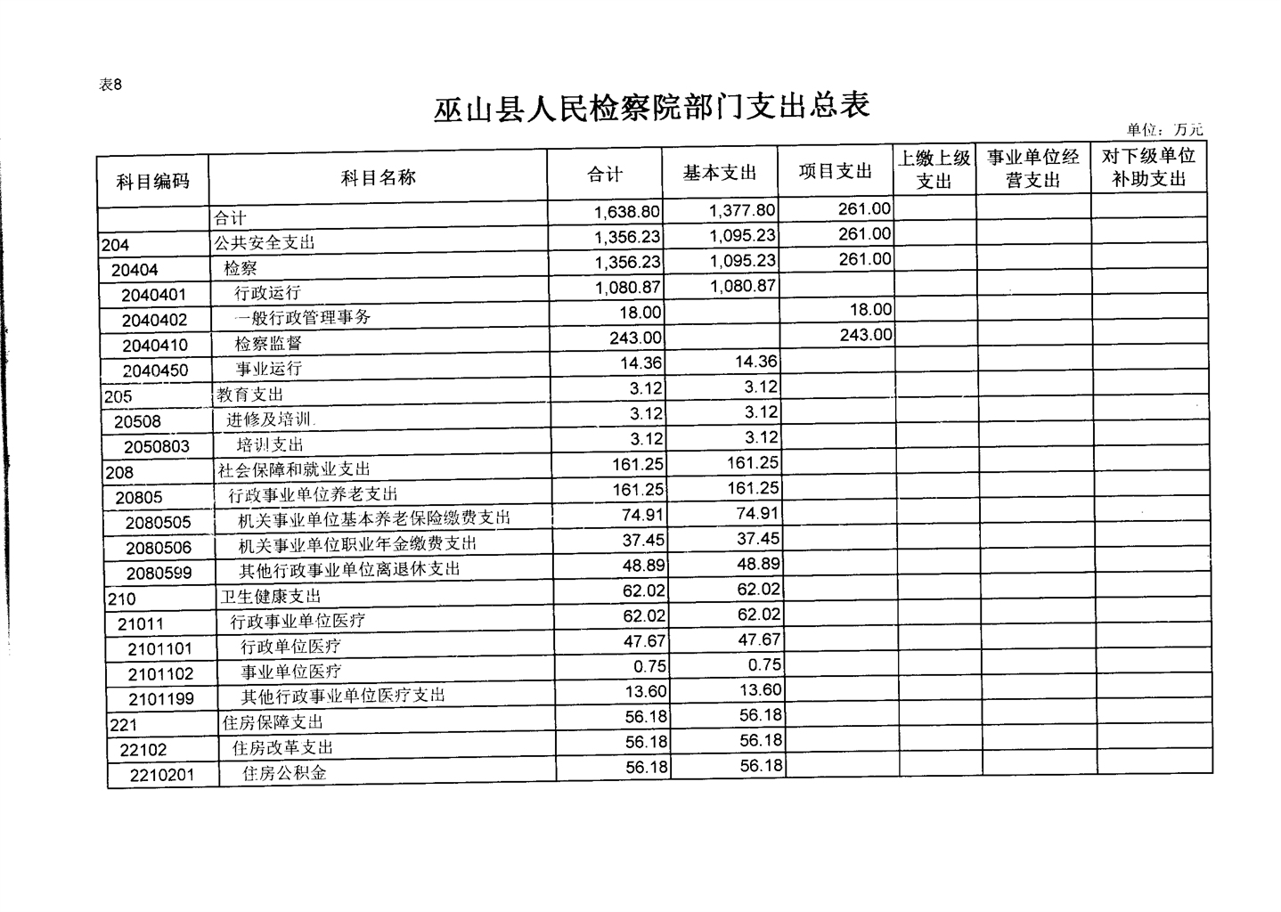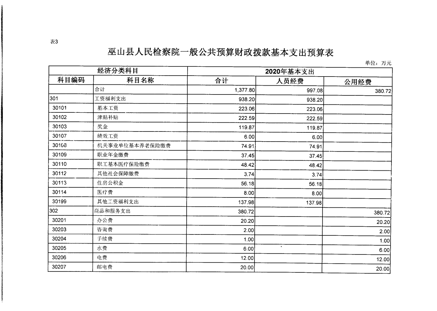 巫山县人民检察院2020年部门预算情况说明