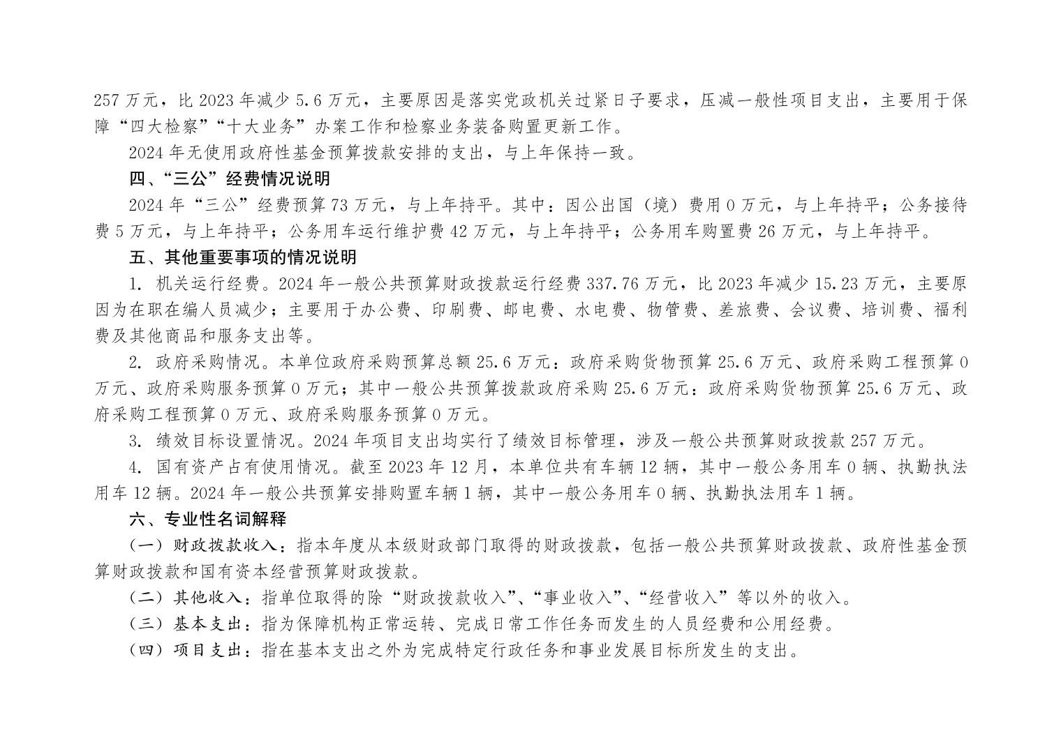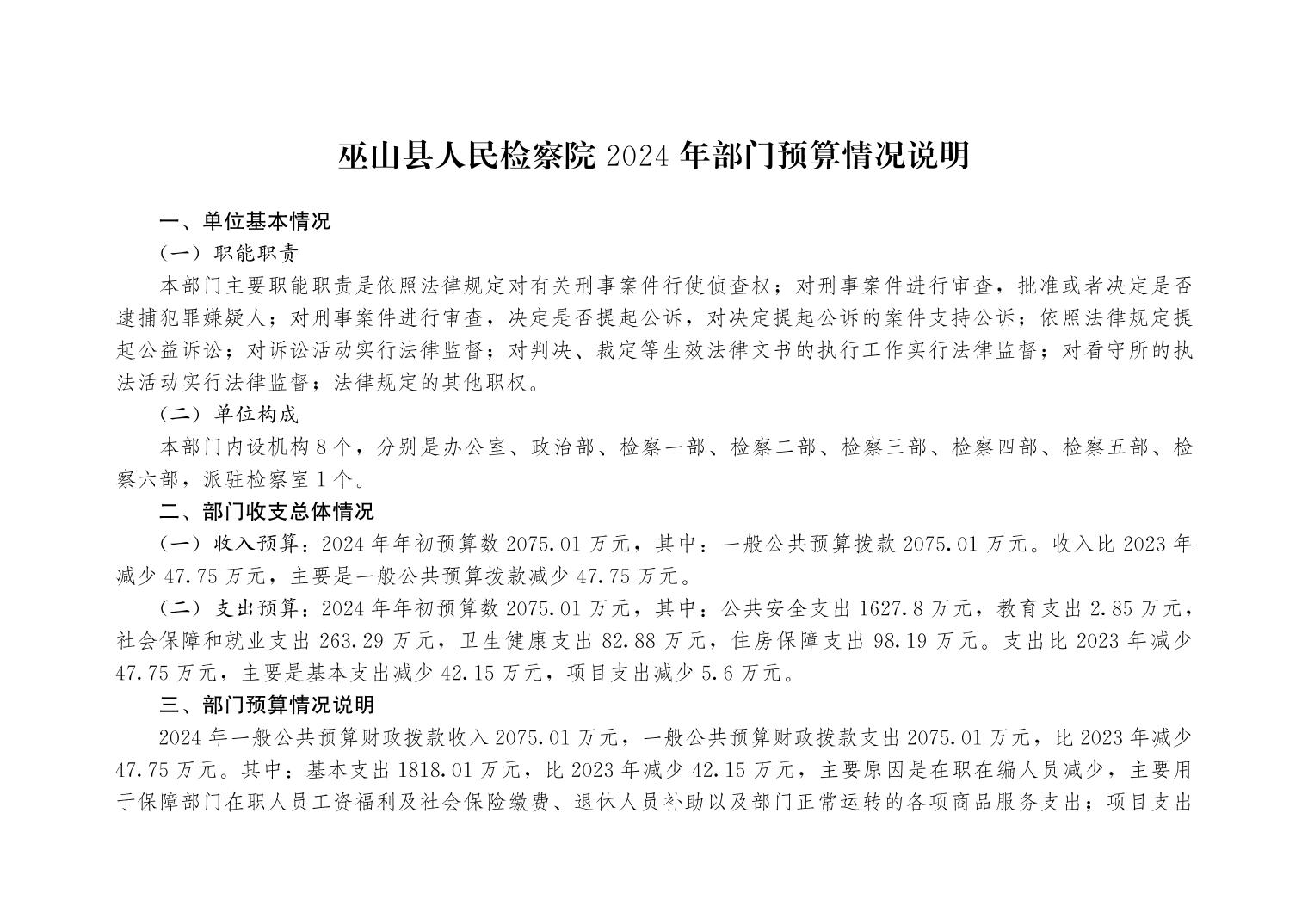 巫山县人民检察院2024年部门预算情况说明