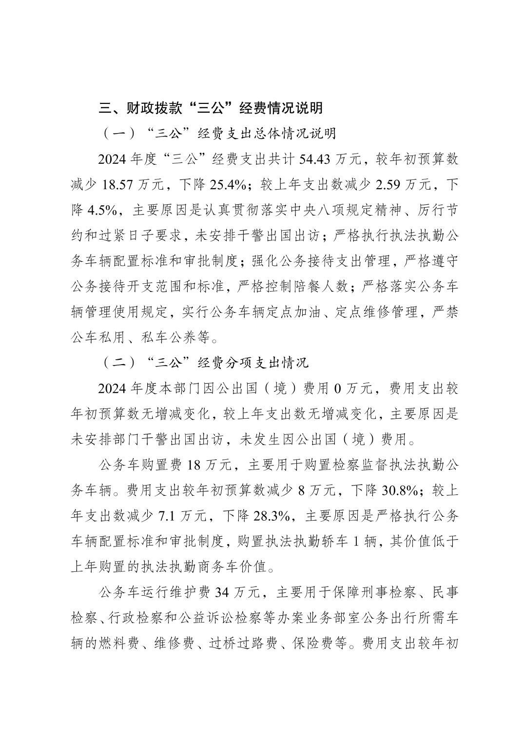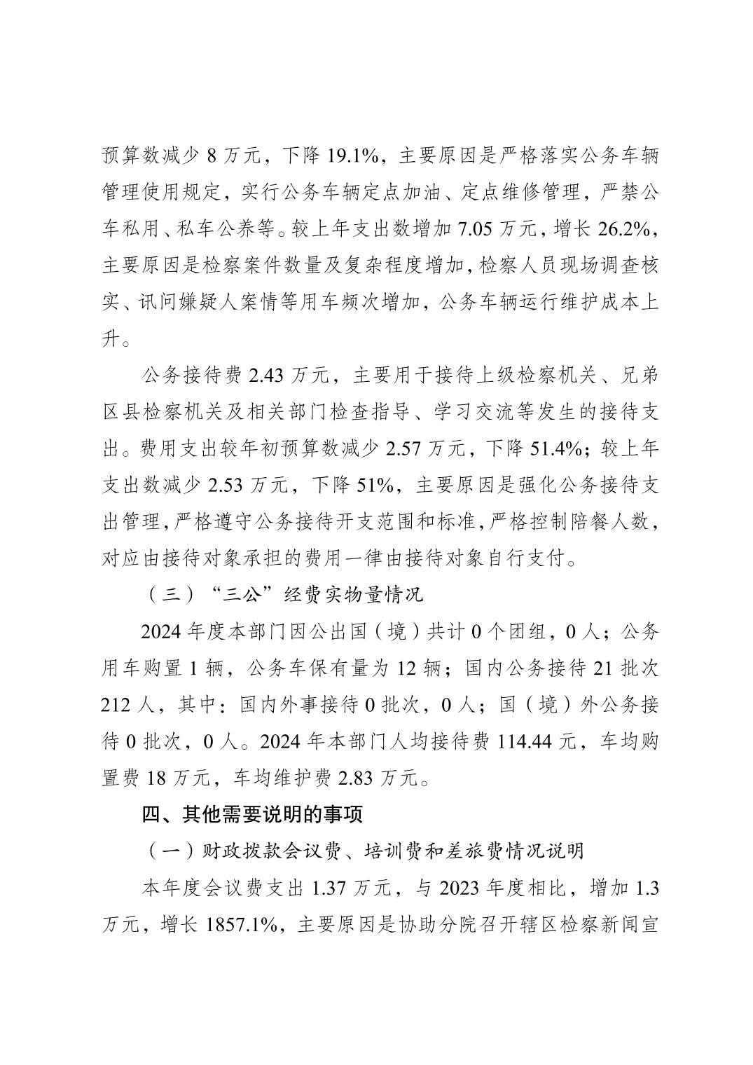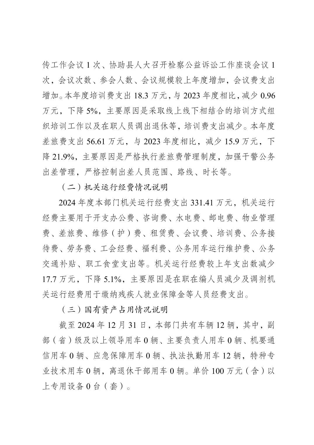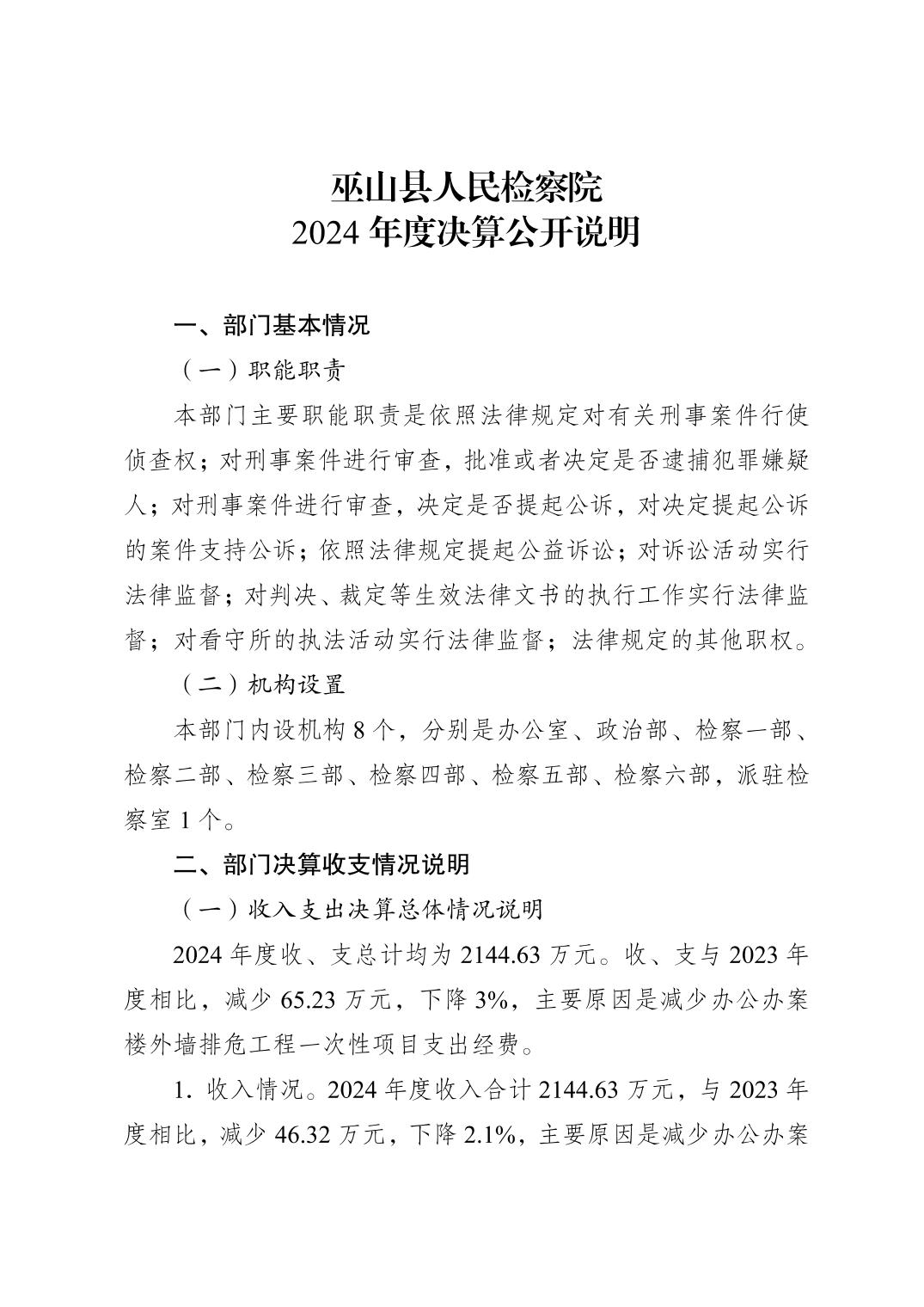 巫山县人民检察院2024年度决算公开说明