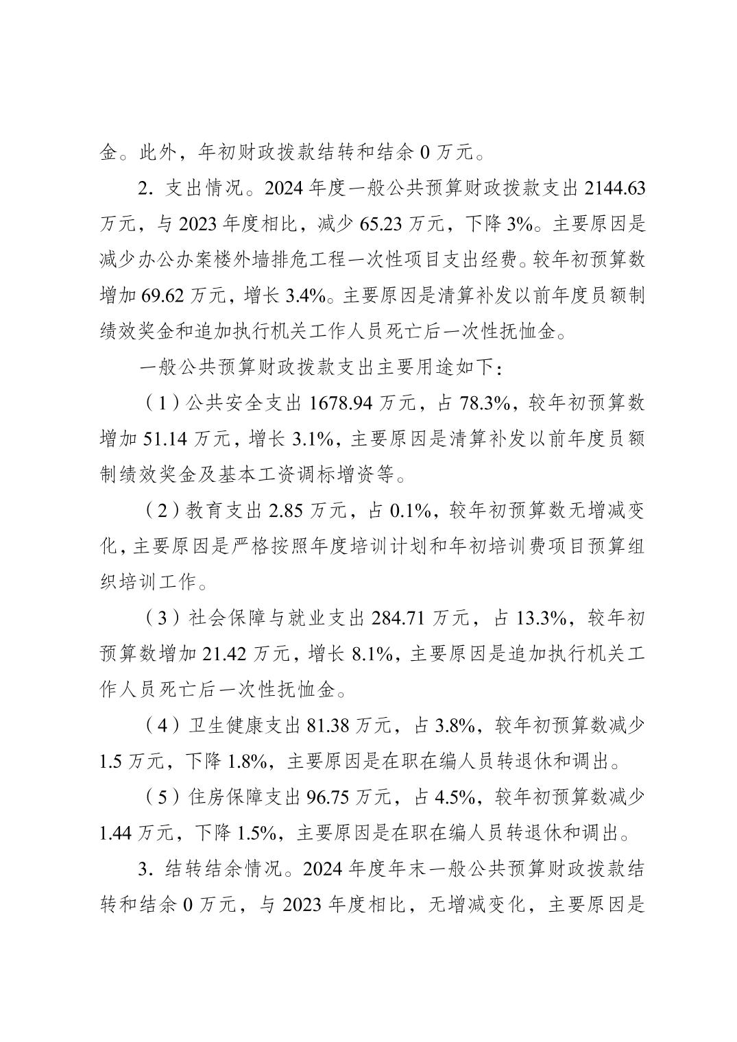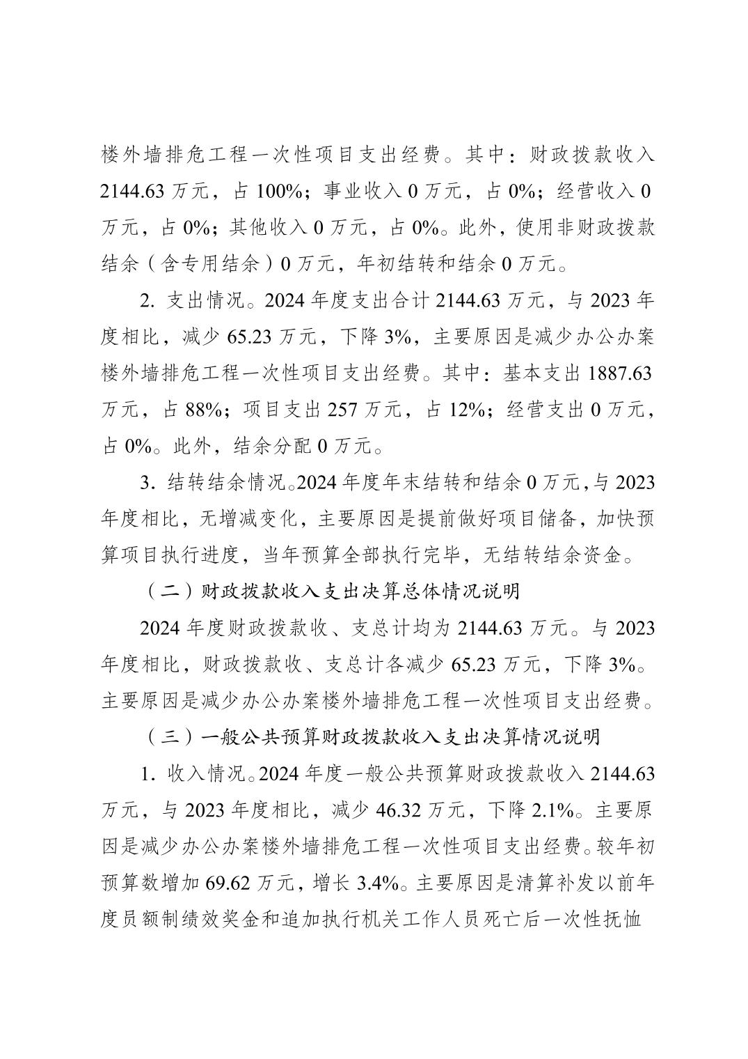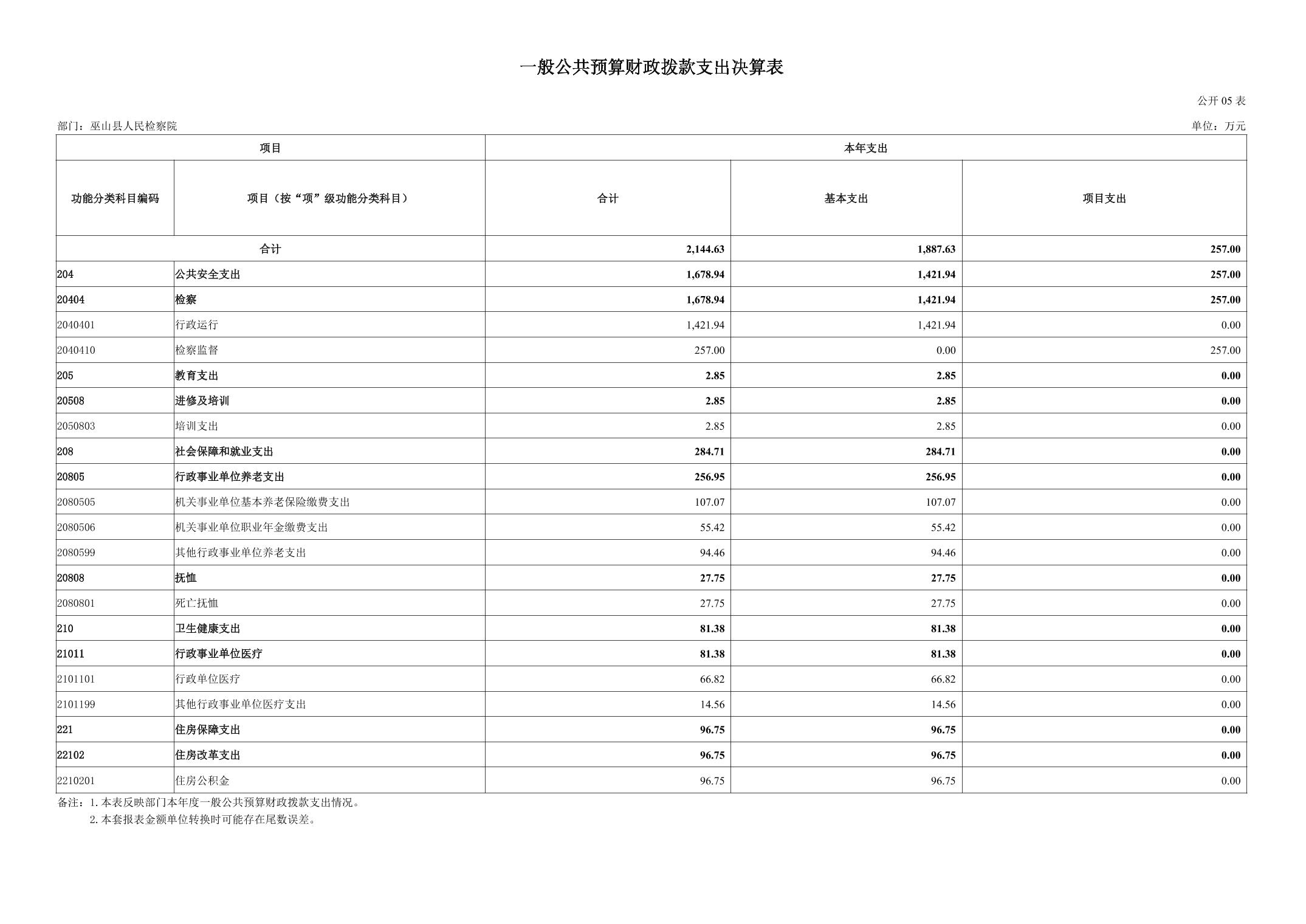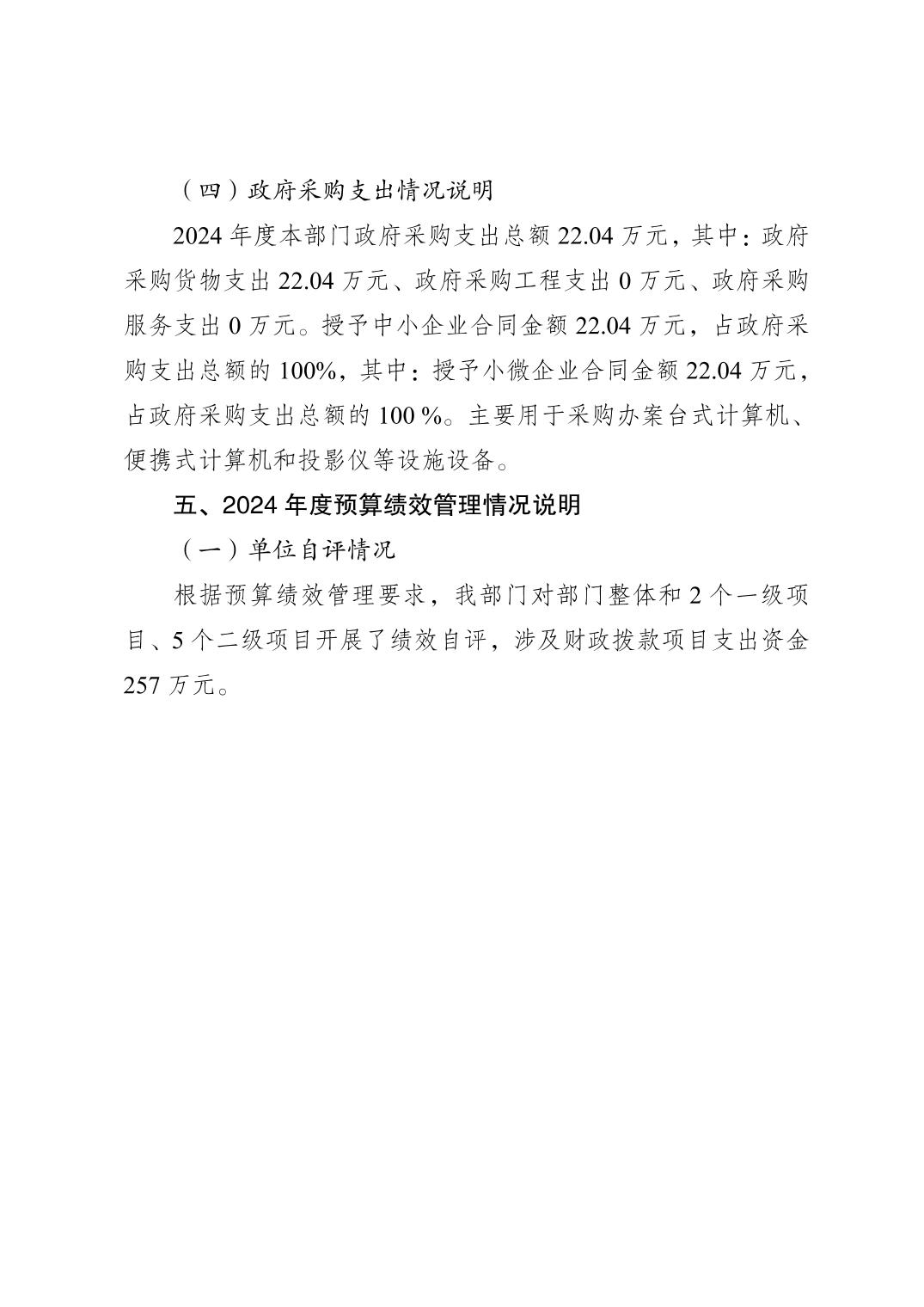 巫山县人民检察院2024年度决算公开说明