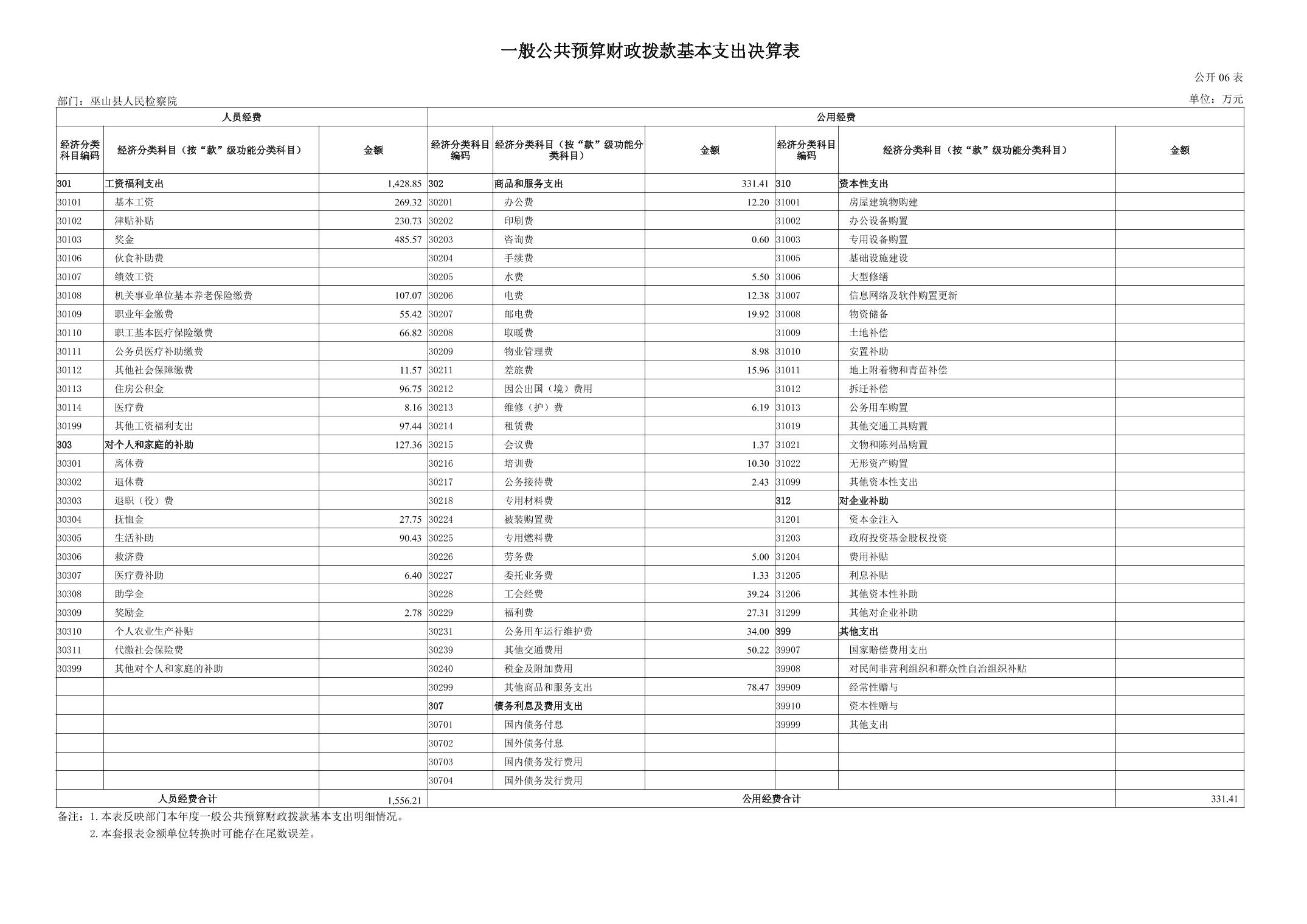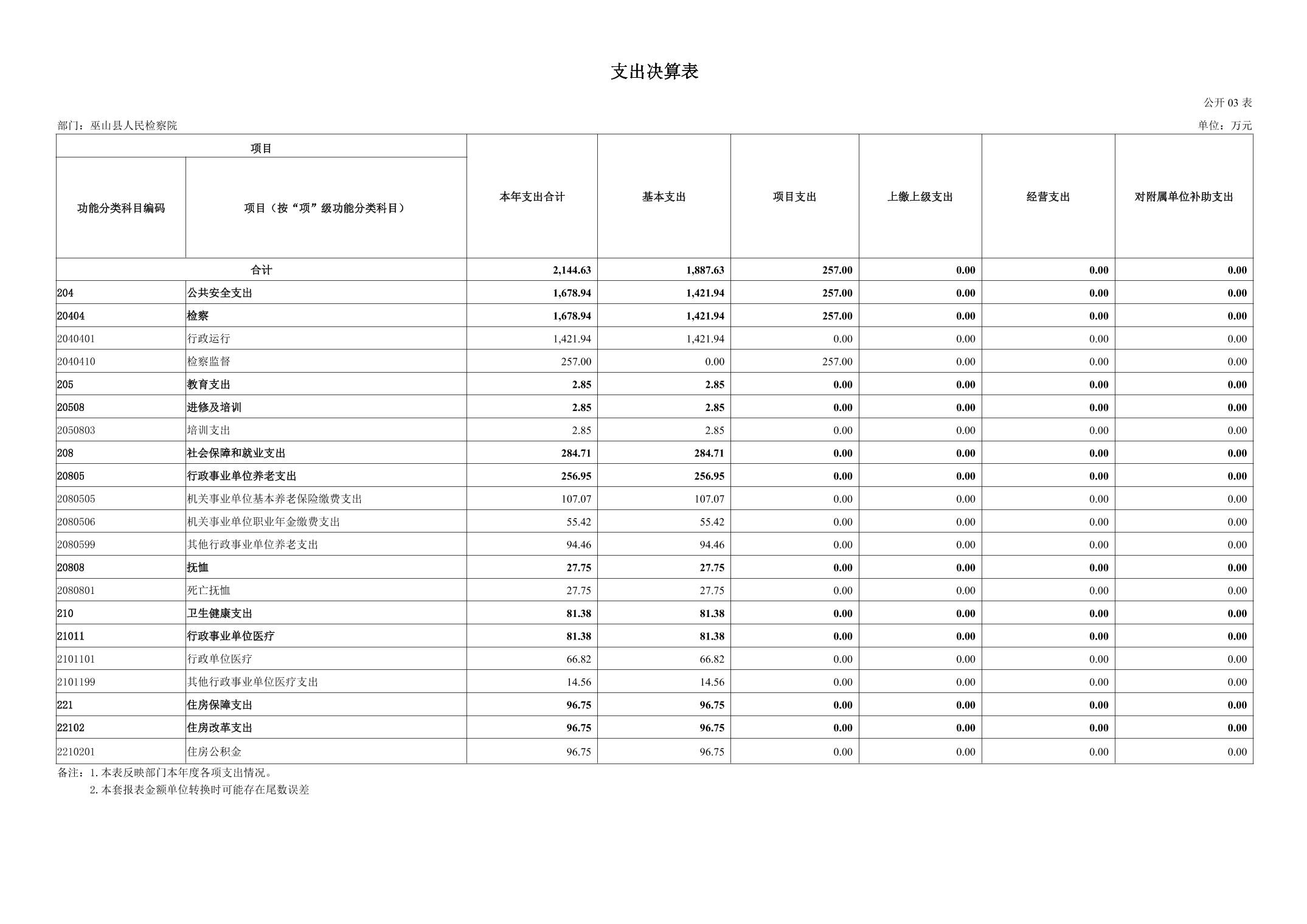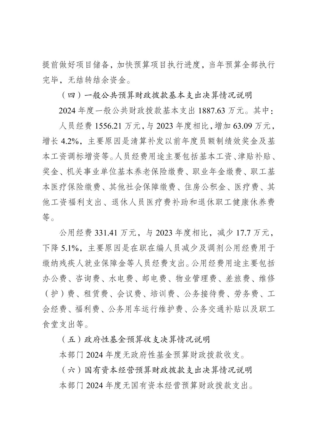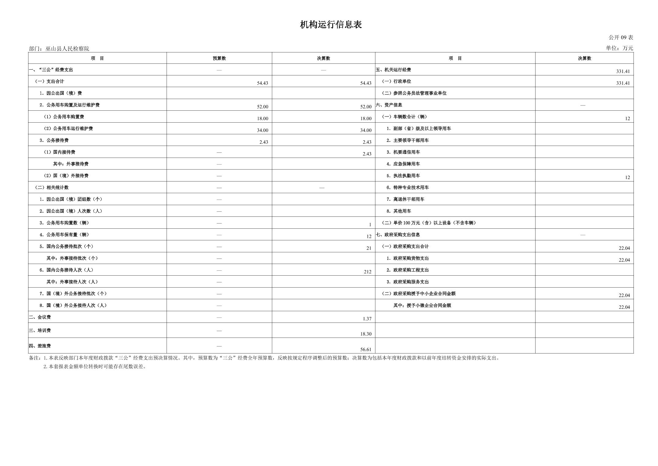巫山县人民检察院2024年度决算公开说明