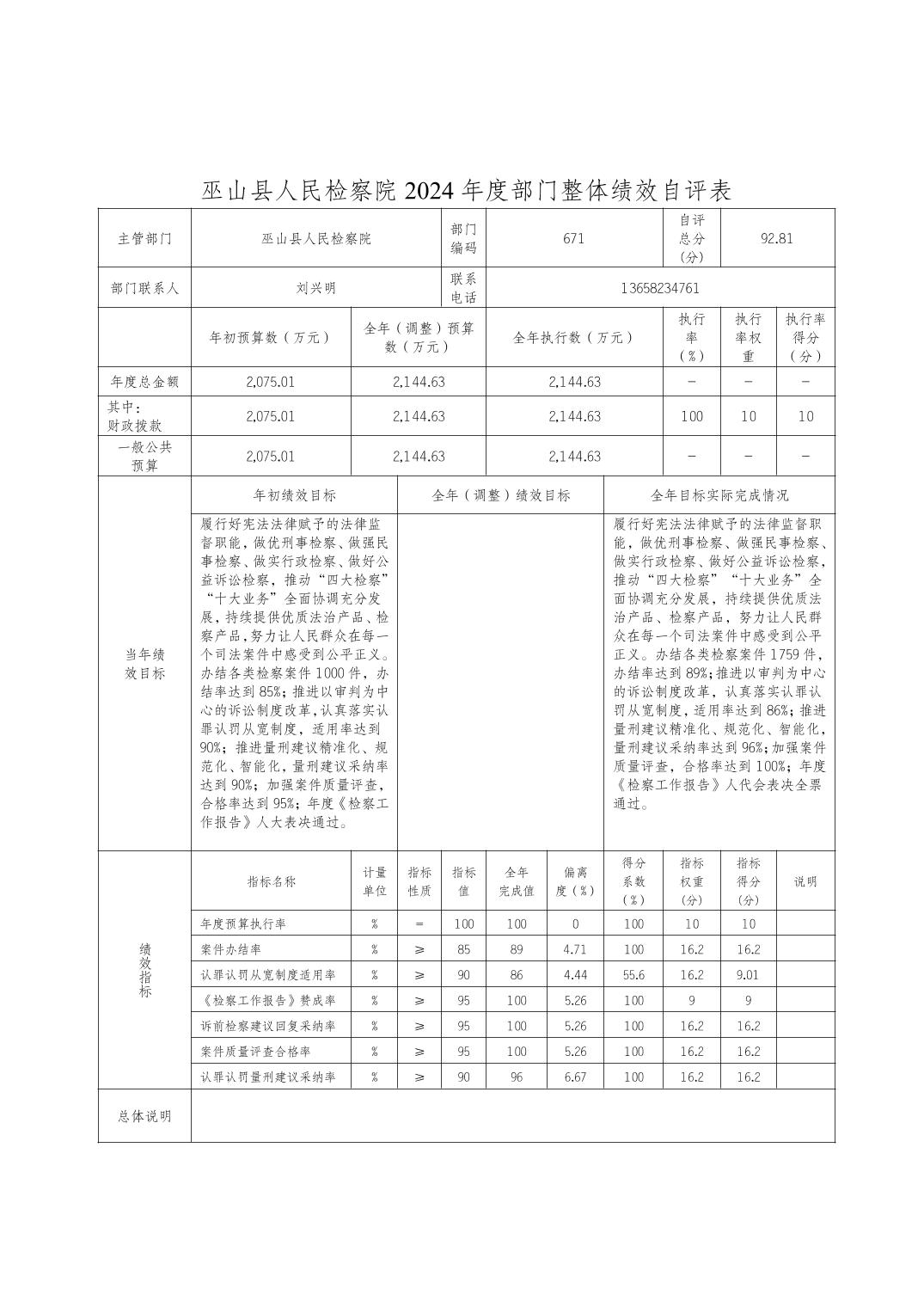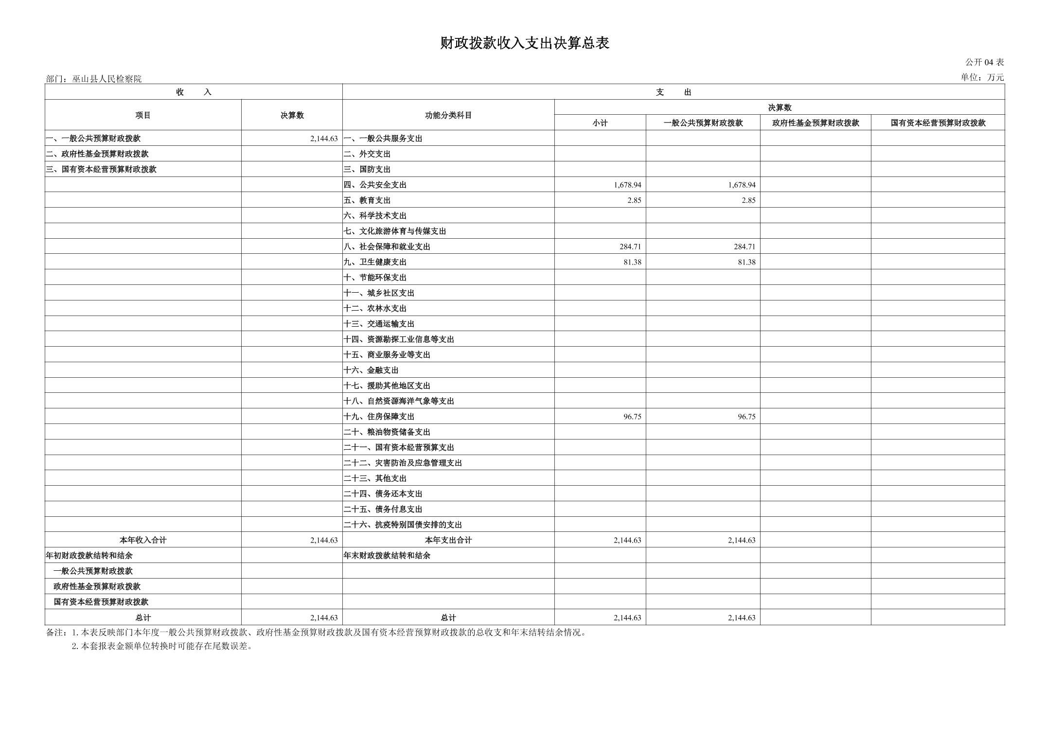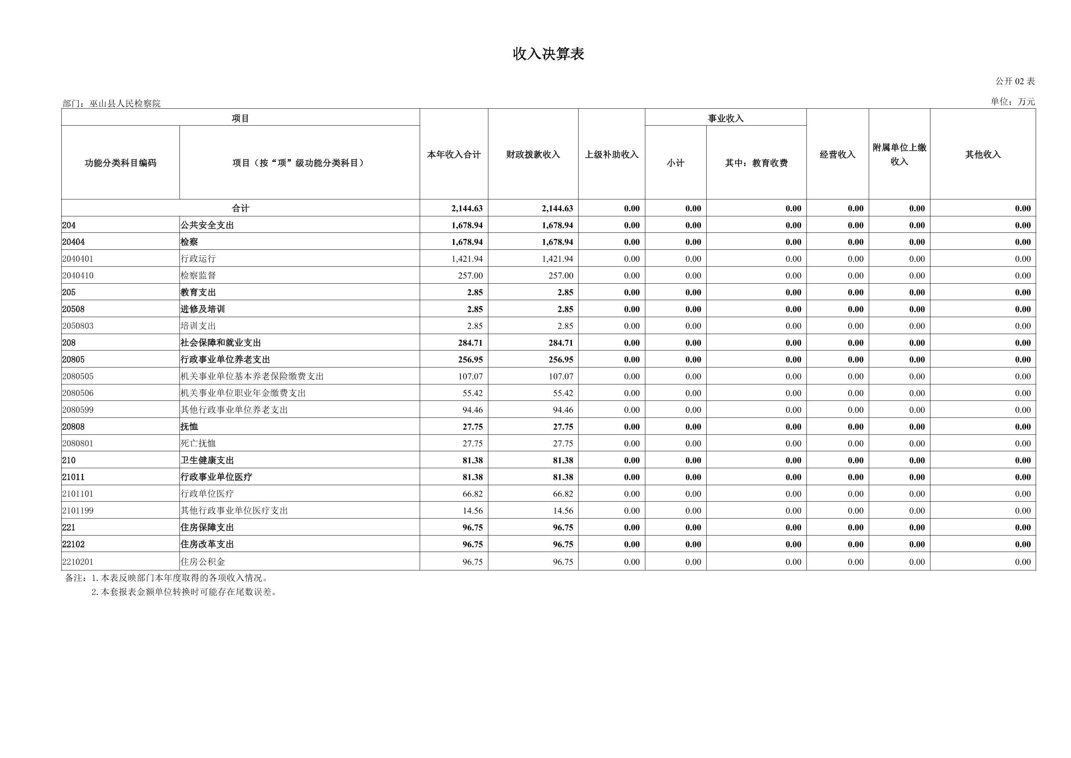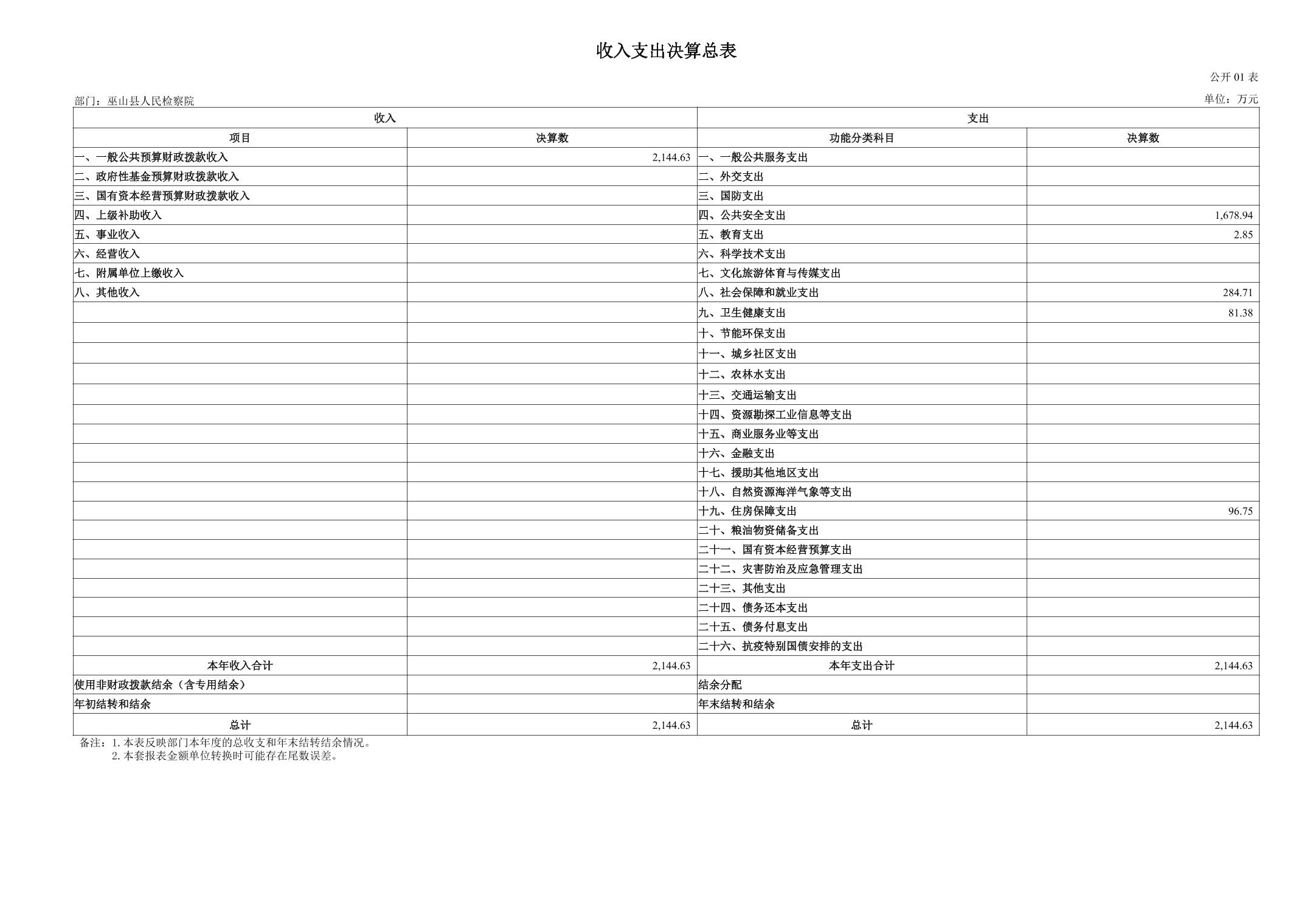 巫山县人民检察院2024年度决算公开说明