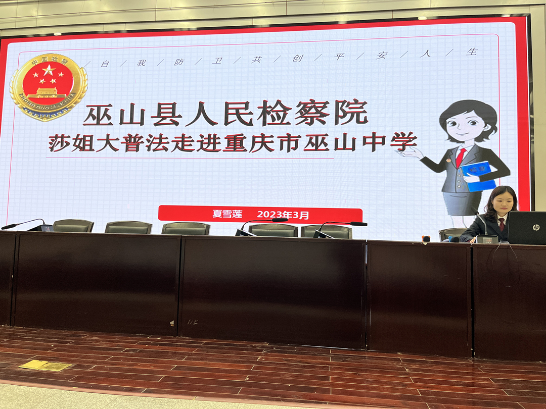 3月6日,巫山县院检察二部受重庆市巫山中学妇委会邀请,到该校为300余名高一住读女生上一堂题为“我的青春我做主”的法治课, 并送上“三八”妇女节祝福。