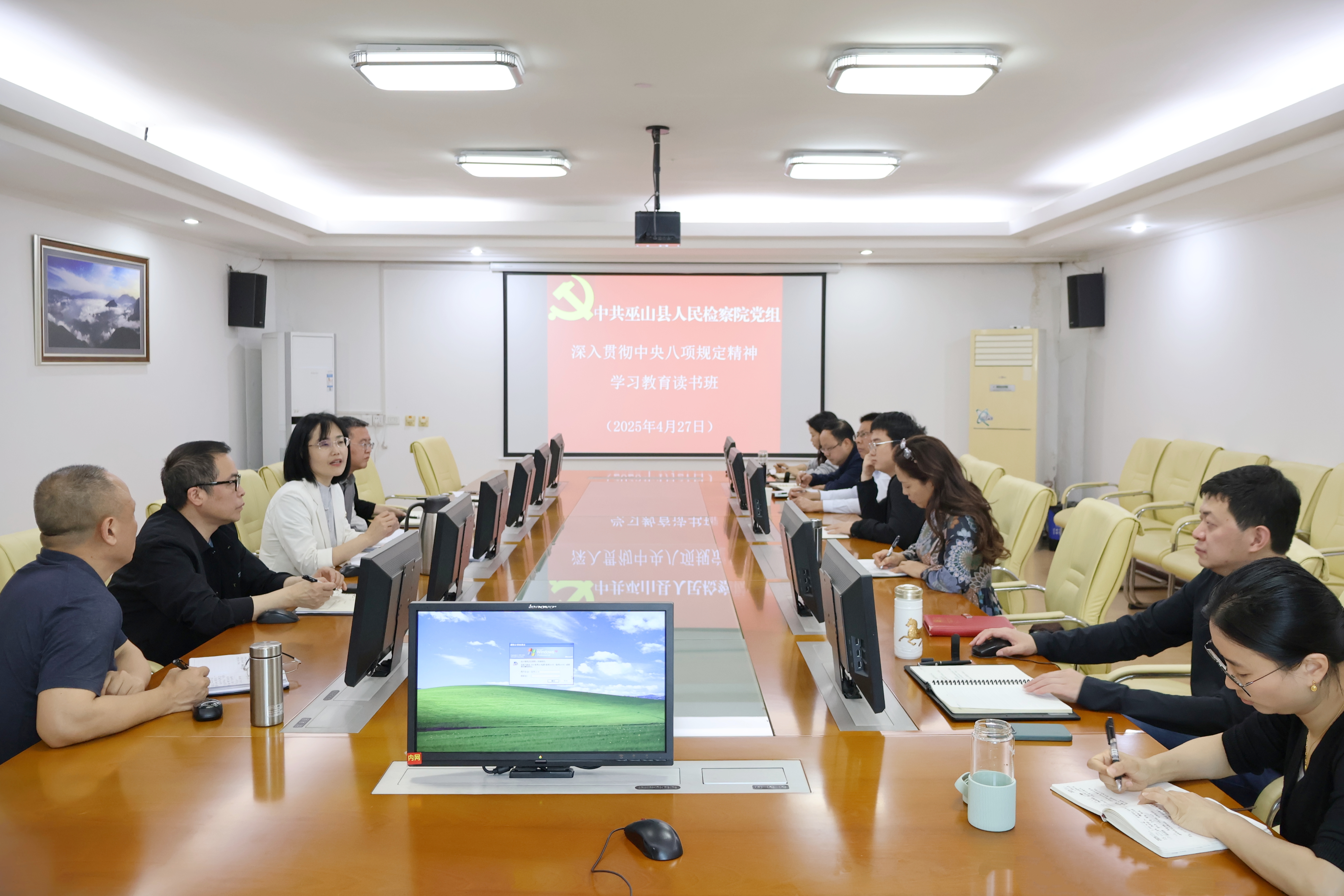 4月25日至27日,巫山县检察院举办深入贯彻中央八项规定精神学习教育读书班。读书班采取个人自学、集中研学、研讨交流相结合的方式,认真研读《习近平关于加强党的作风建设论述摘编》、中央八项规定及其实施细则精神等学习材料。院领导、检委会专职委员、部门负责人参加读书班学习并围绕主题作交流发言。