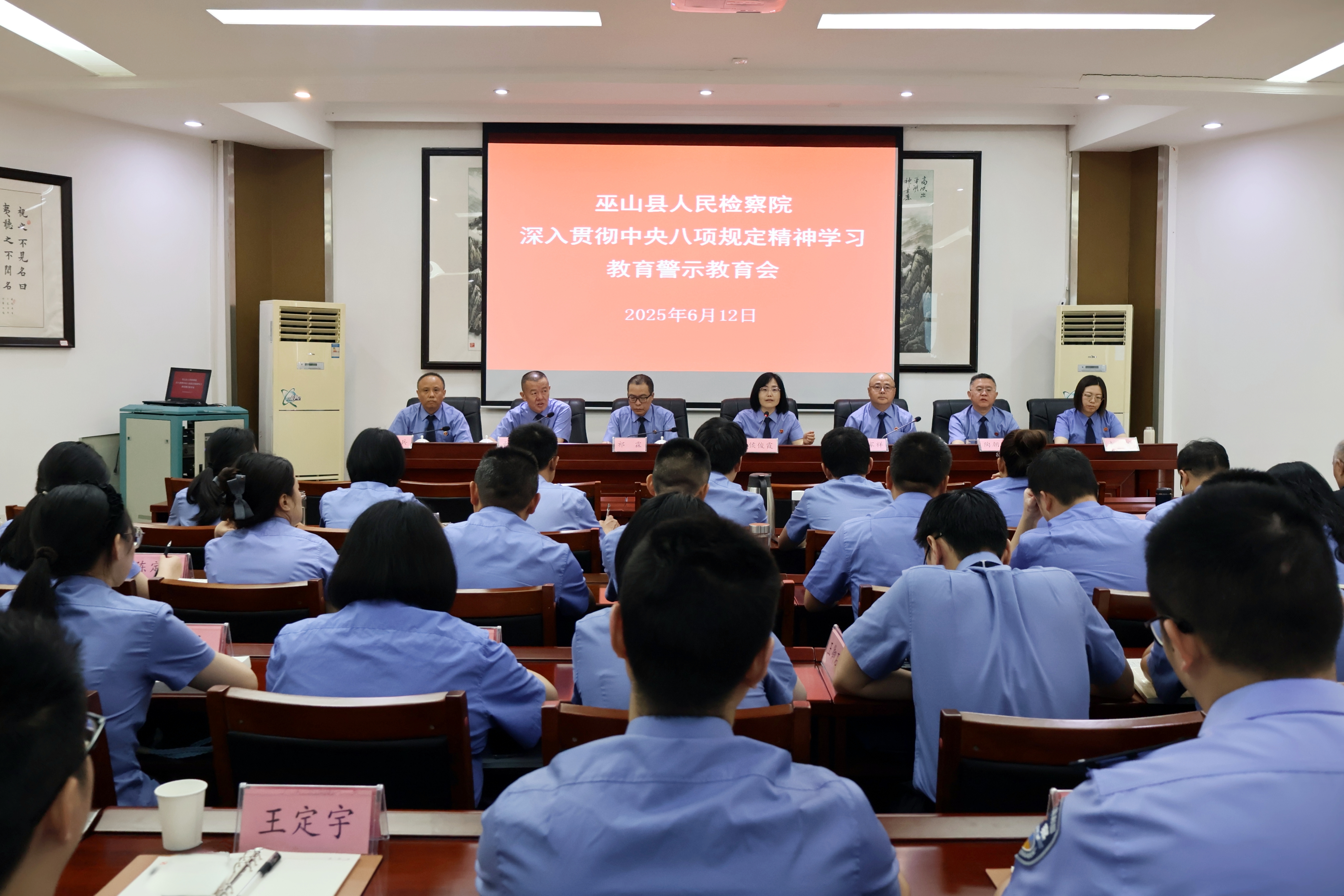 6月12日,巫山县检察院召开深入贯彻中央八项规定精神学习教育警示教育会。会议由院党组副书记、副检察长张家祥主持,院党组书记、检察长侯俊霞出席会议并讲话。全体干警、部分退休党员干部代表参加。