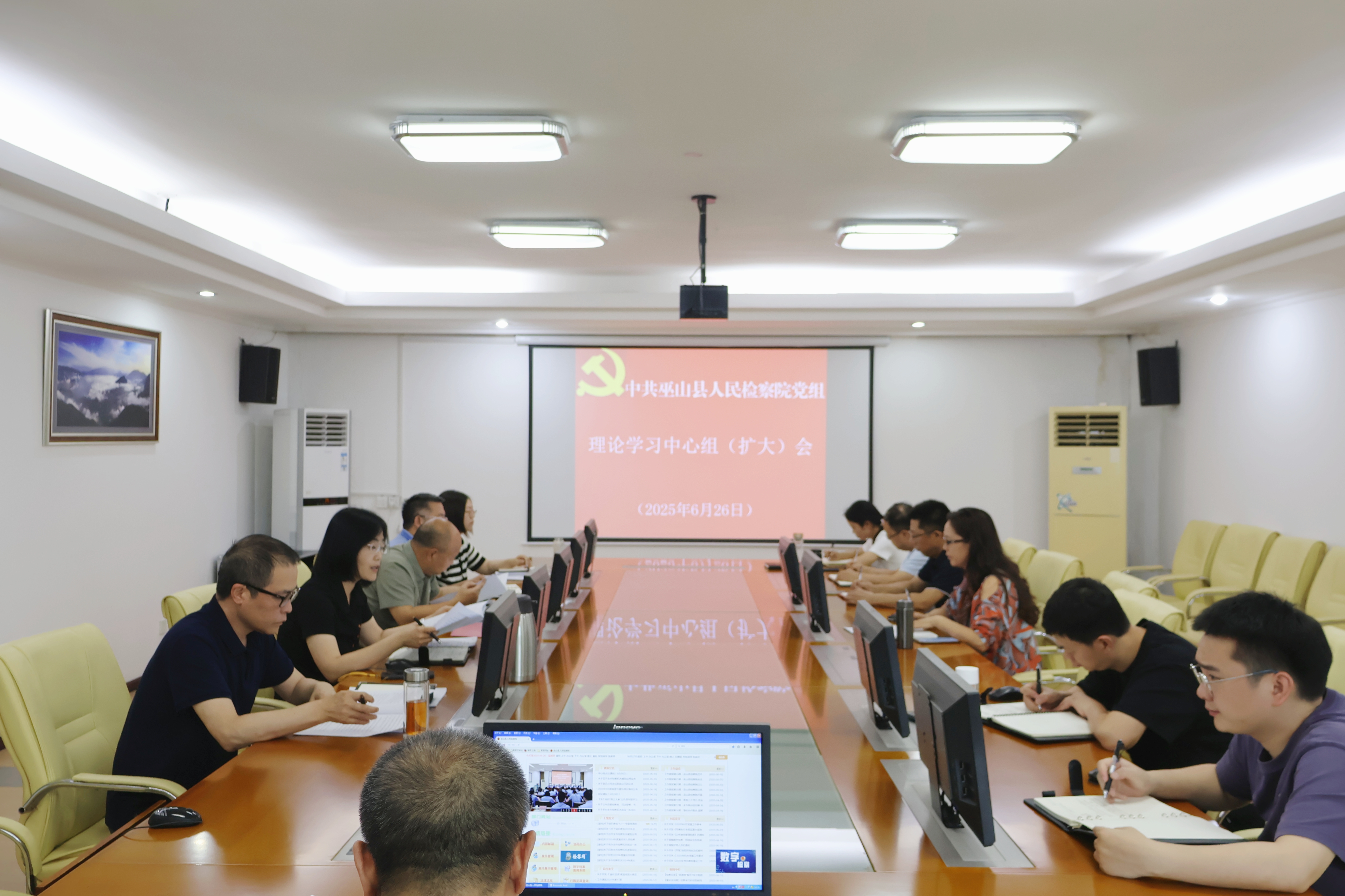 6月26日下午,我院召开党组理论中心组(扩大)2025年第6次会议,会议由院党组书记、检察长侯俊霞主持,院班子成员、检委会专职委员及各部室主要负责人参加会议。
