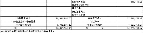 本部门2017年度收入总计2,660.38万元,支出总计2,660.38万元。与2016年决算数相比,收支减少136.29万元、下降4.87%,主要原因是更好的发挥财政资金使用效益,且同比上年,无基本建设类项目追加预算。