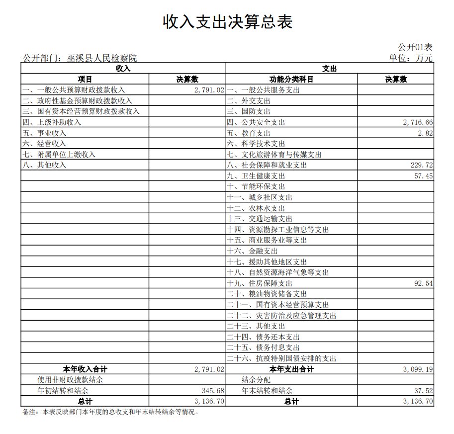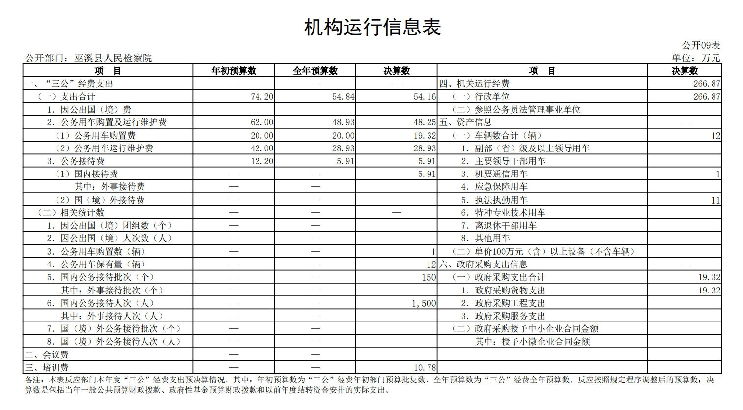 巫溪县人民检察院2022年度部门整体绩效自评表 |