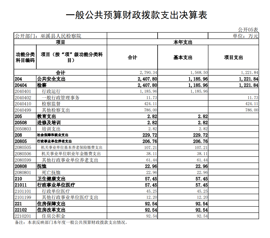 巫溪县人民检察院2022年度项目支出绩效自评表(一级项目) |